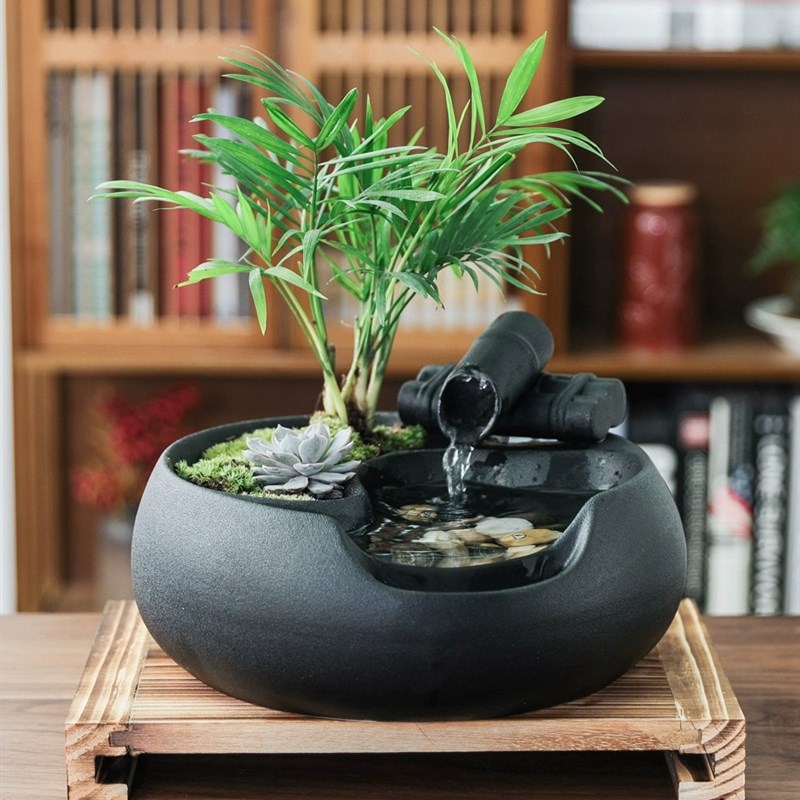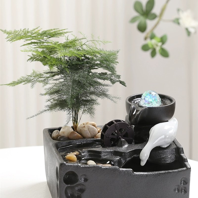 中式轻奢流水生财摆件水循环客厅茶桌创意家居办公桌装饰高档送礼