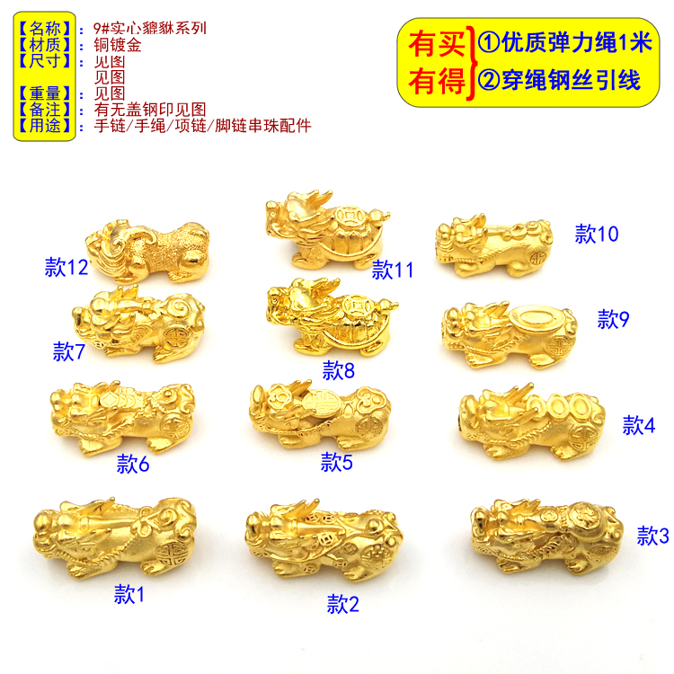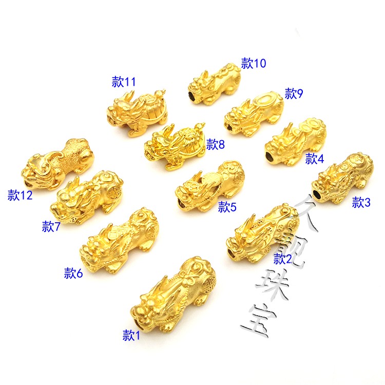沙金饰品实心大貔貅配饰横穿配件编织手绳手链串珠财源广进转运珠