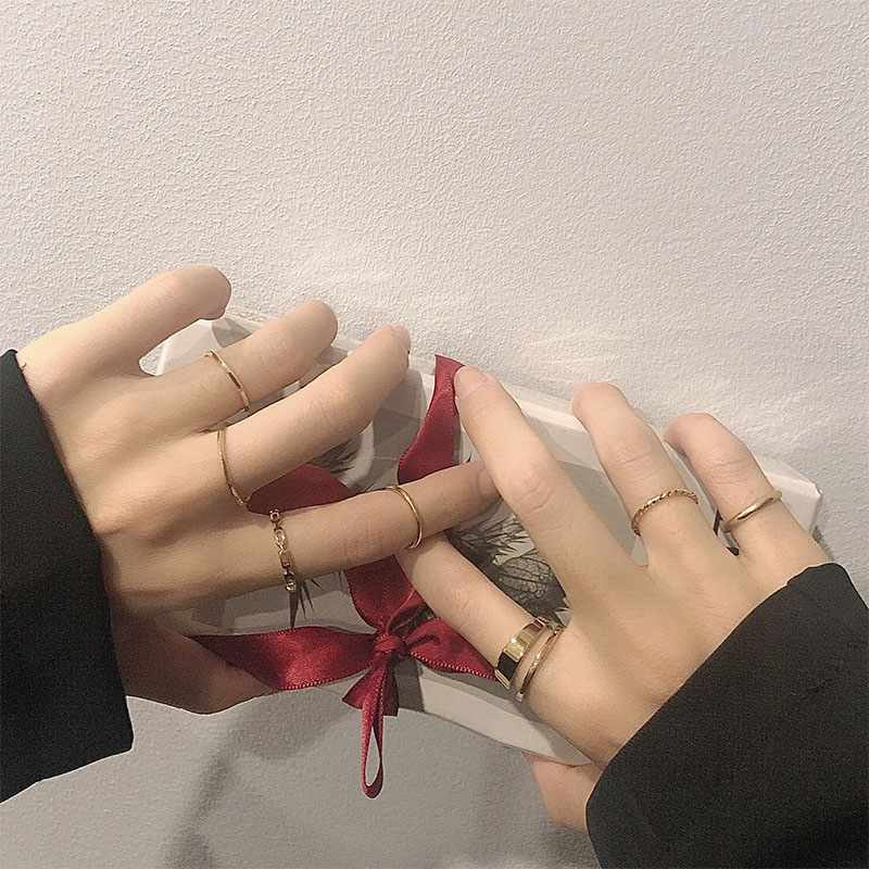 (多件套)不掉色戒指女小众设计简约ins时尚个性冷淡风尾戒食指戒