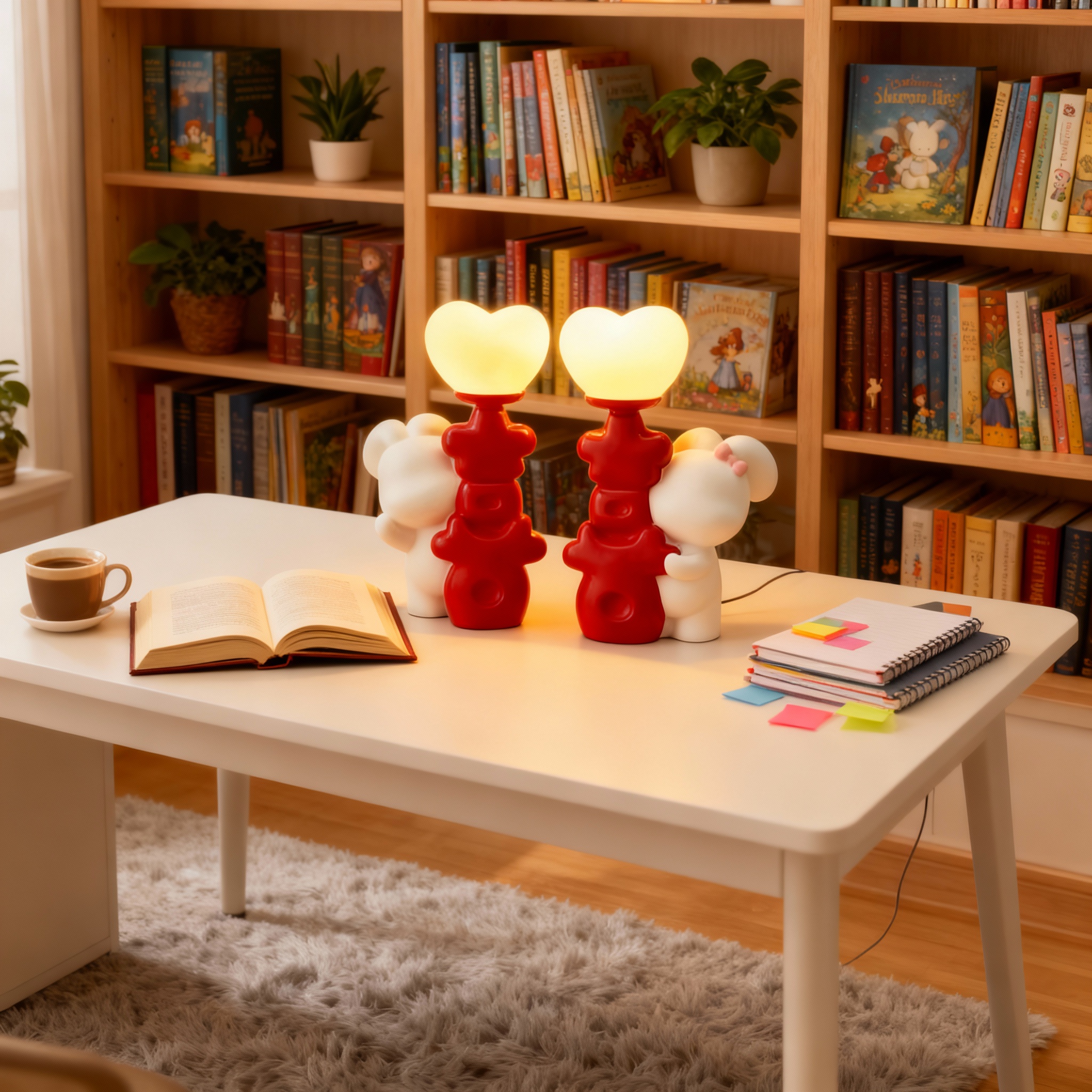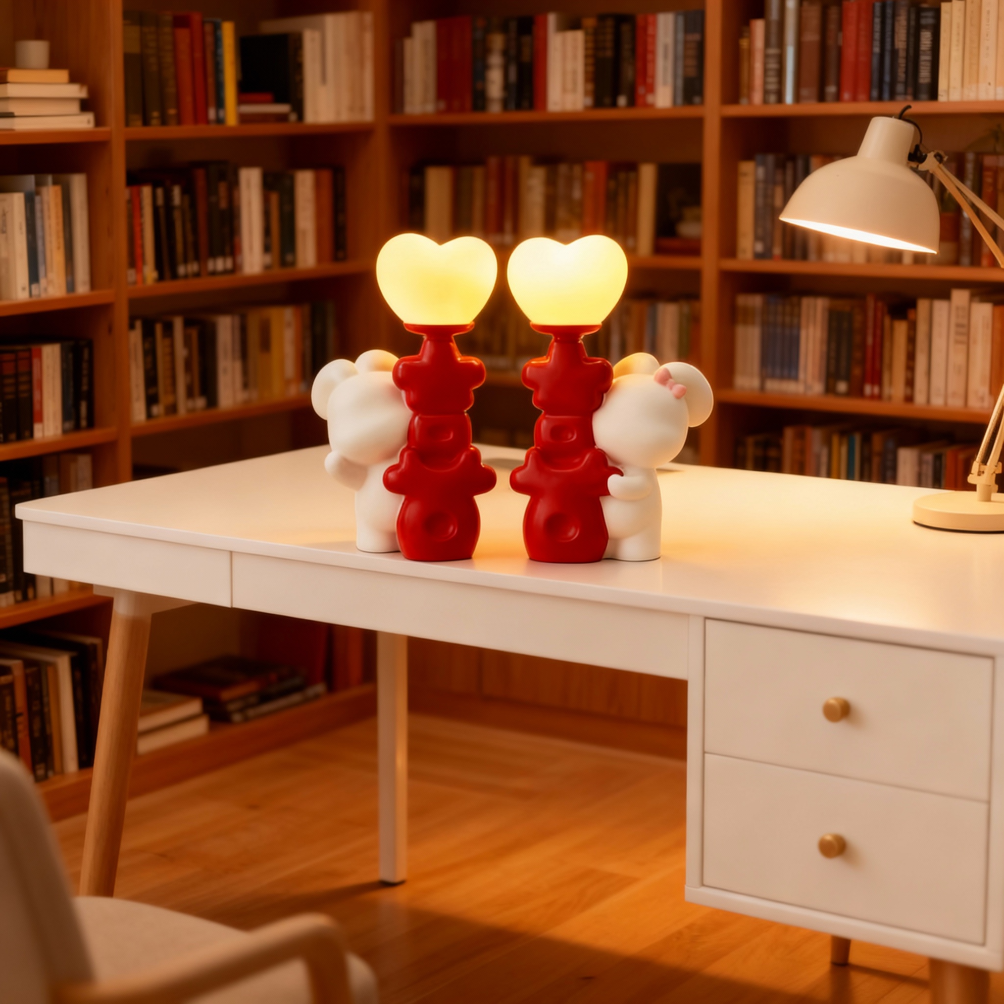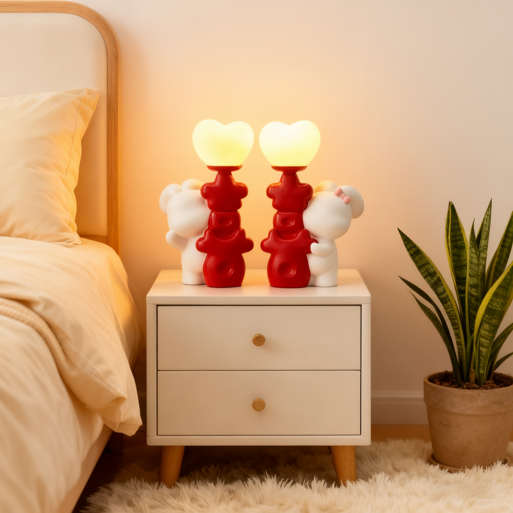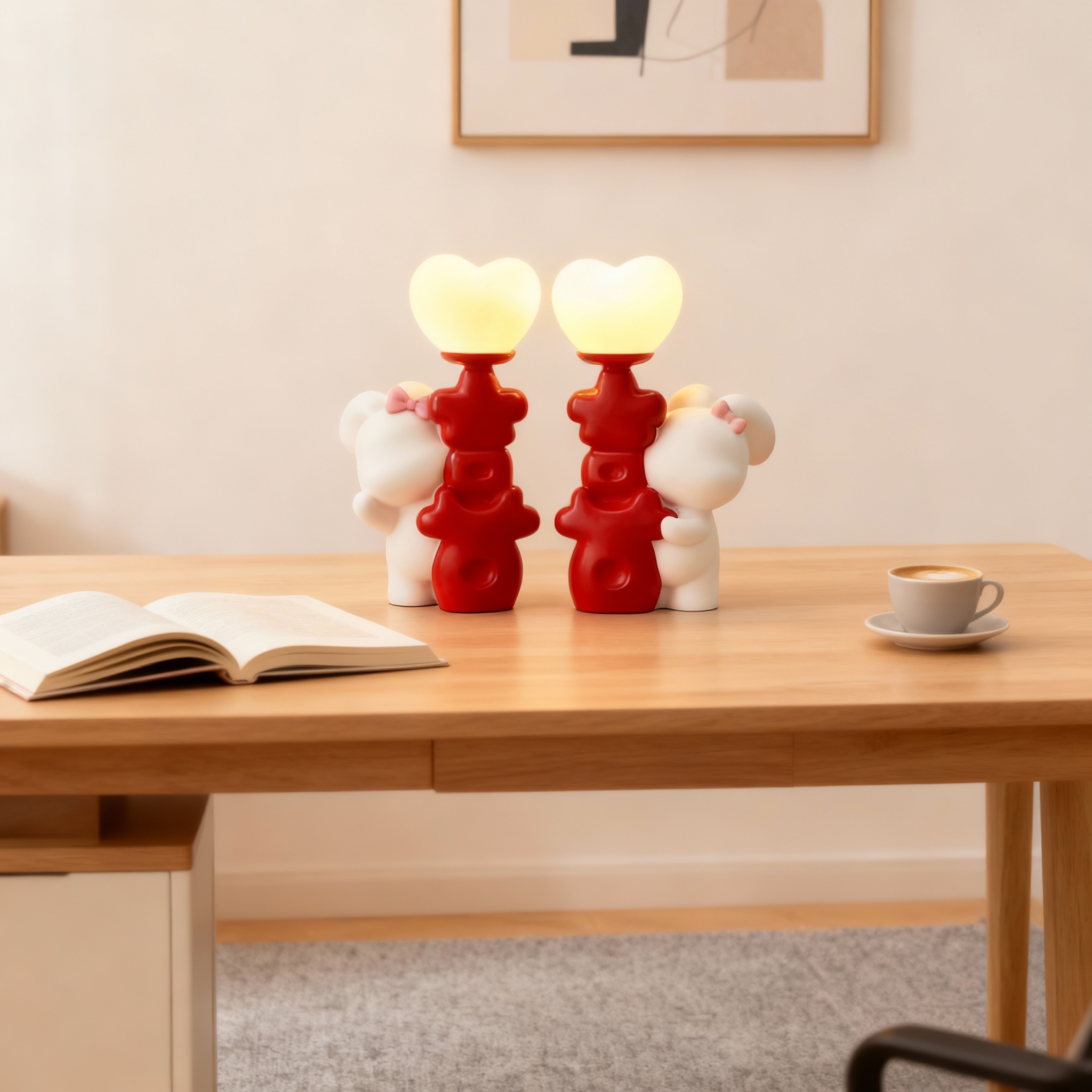 可爱小熊造型台灯卧室床头灯红色卡通装饰摆件氛围感