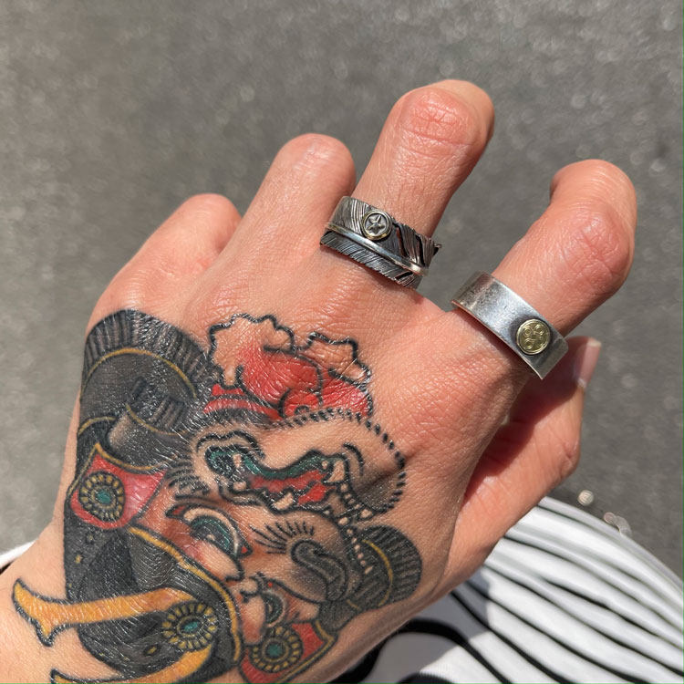 Lucky John 细腻自然 日本手打硫化做旧18K点金银羽毛戒指