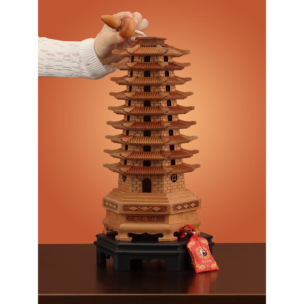 桃木文昌塔摆件木质九层十三层13层办公室书房书桌装饰摆设木雕制