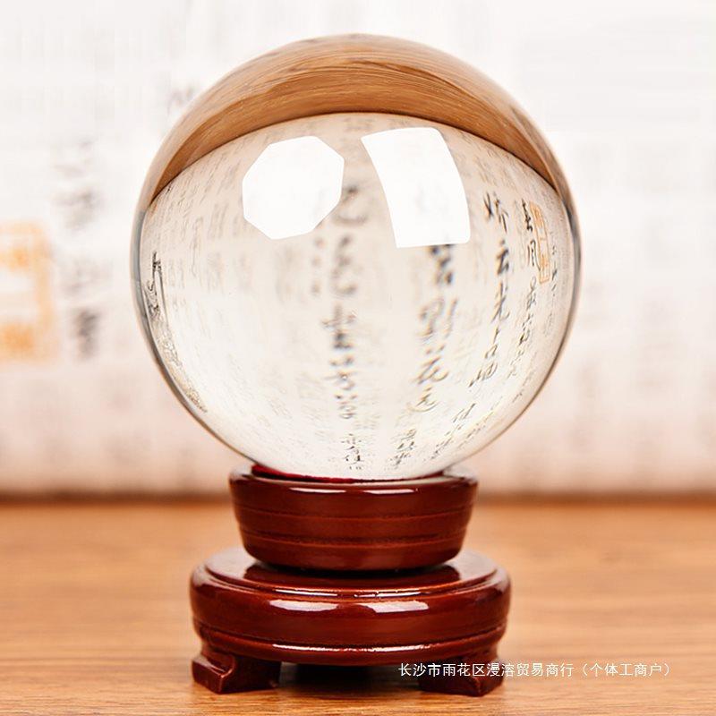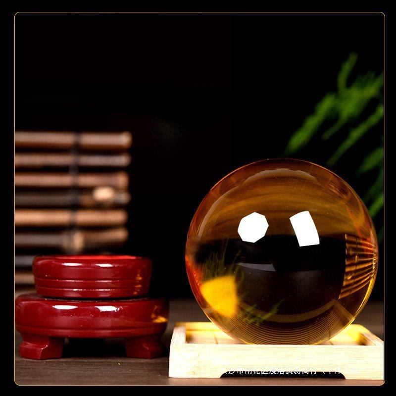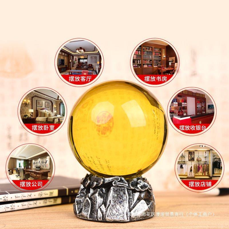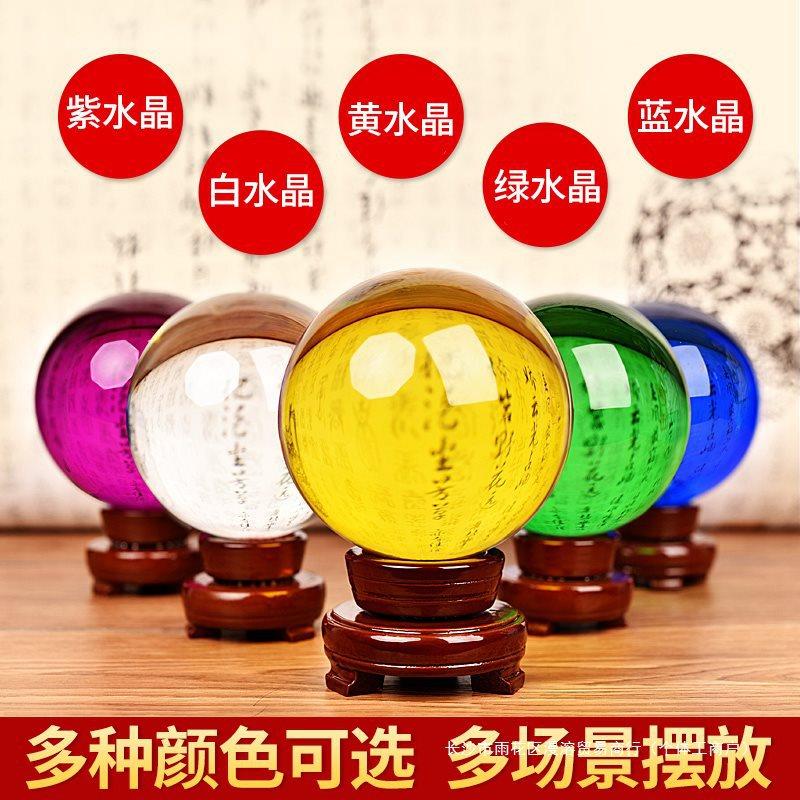 黄色白水晶球摆件透明玻璃圆球客厅蓝紫粉家居大小号开业装饰摆件
