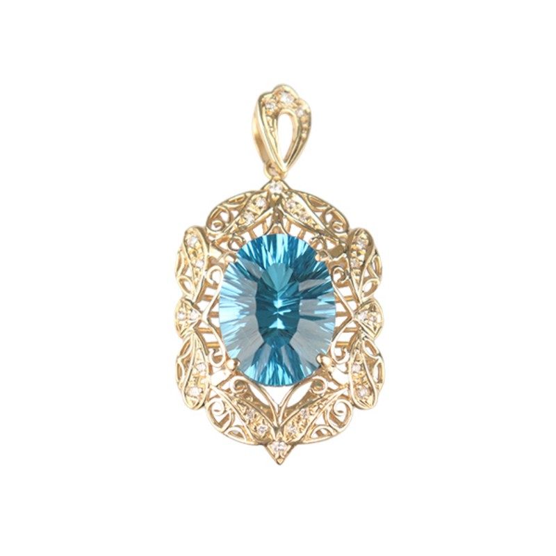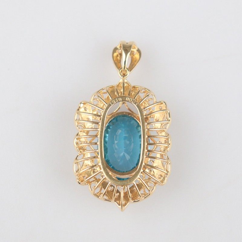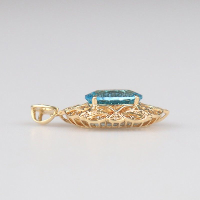 【自营】中古95新日本进口商品复古蓝色托帕石钻石吊坠K18黄金