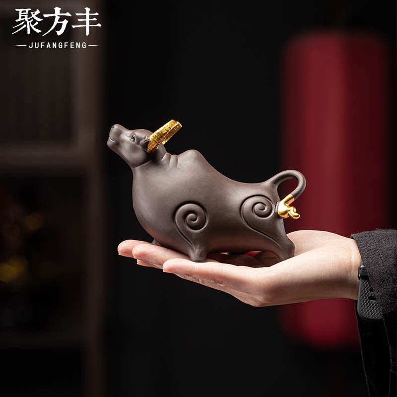 创意牛气冲天招财摆件紫砂吉祥物生肖家居客厅酒柜玄关办公桌装饰
