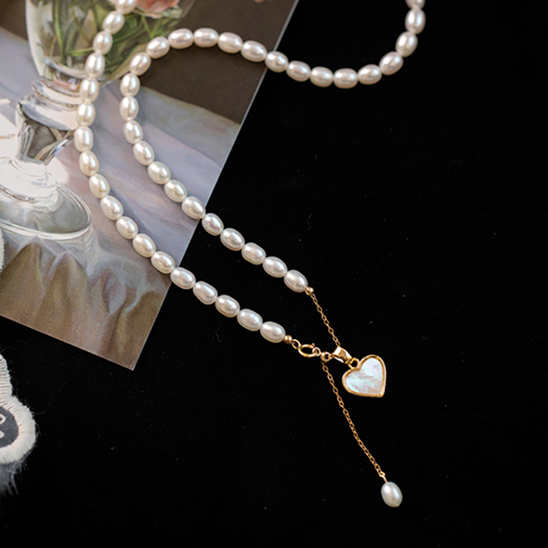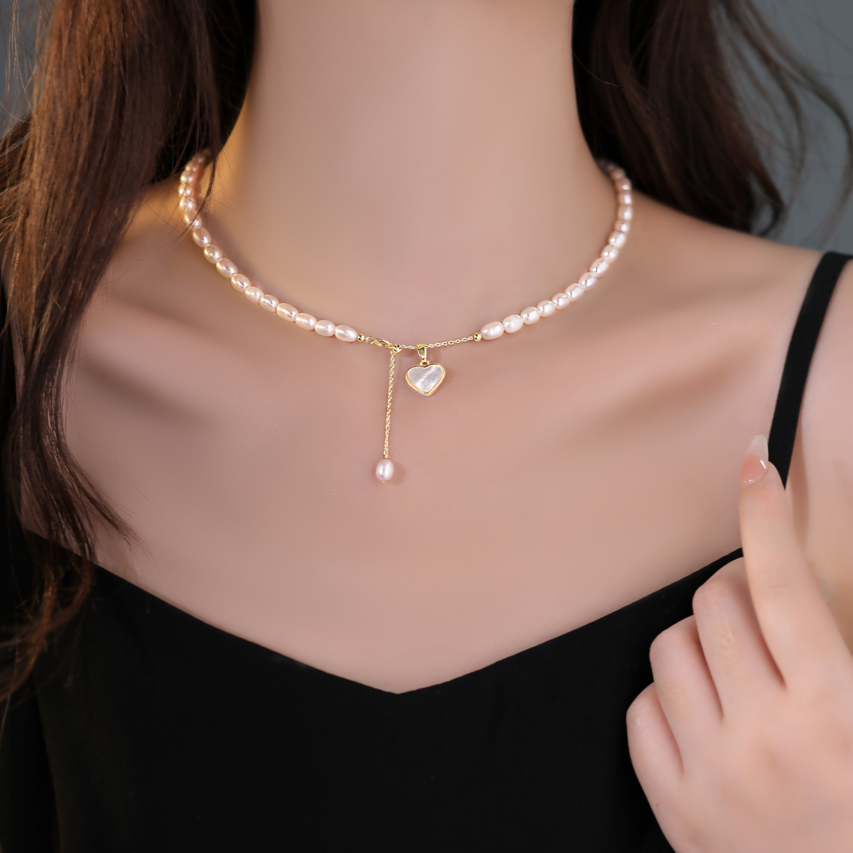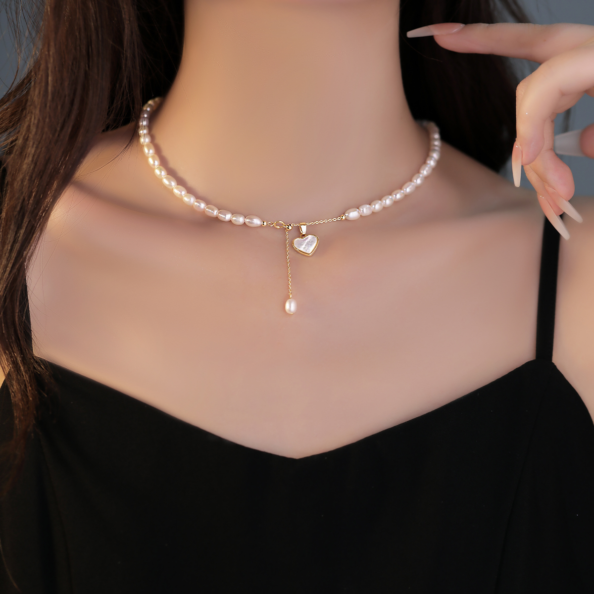 爱心仿贝壳珍珠项链女款轻奢小众设计感小米珠锁骨链2025新款爆款