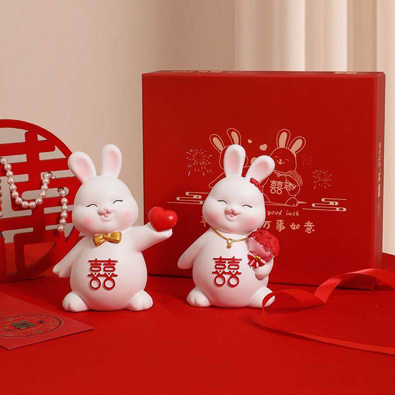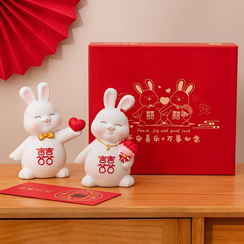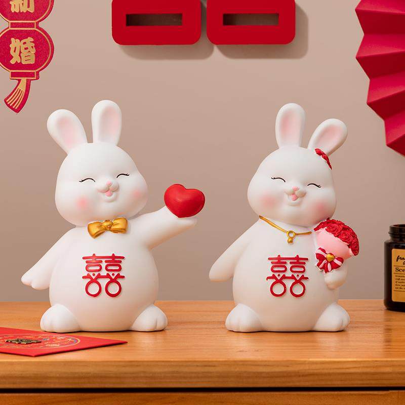 订婚情侣兔子摆件家居客厅婚房布置实用装饰品送闺蜜新人结婚礼物