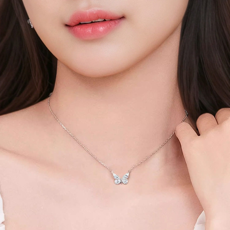YIN银次元S925纯银蝶光项链小众设计珐琅发光蝴蝶轻奢高级送女友