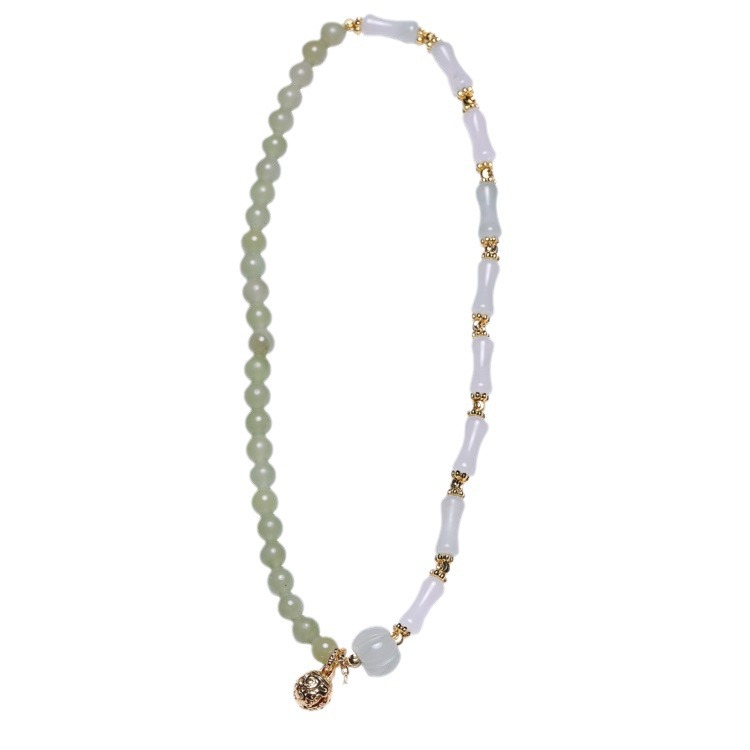 云水谣天然和田玉串珠手链新中式复古东陵玉天山翠竹节手串送