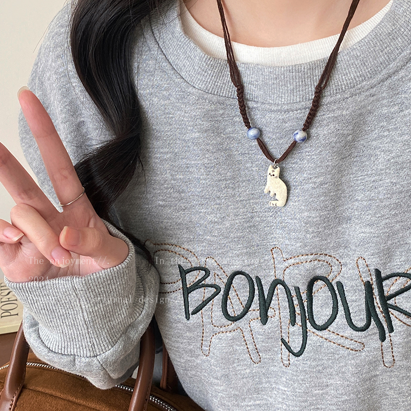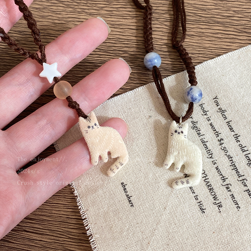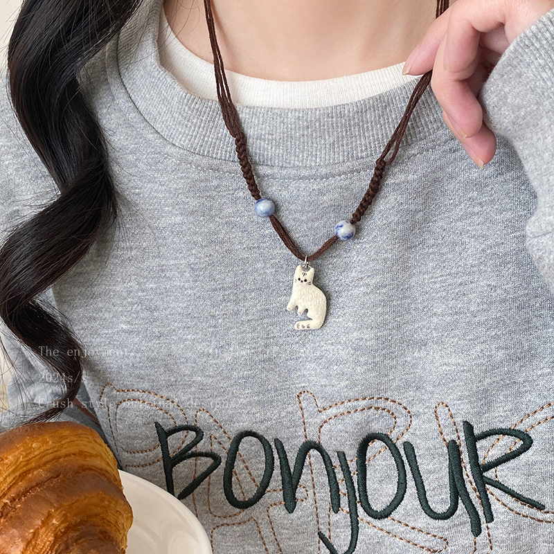 立体小猫咪编织毛线项链女可爱小众设计感毛衣链时尚个性秋冬配饰
