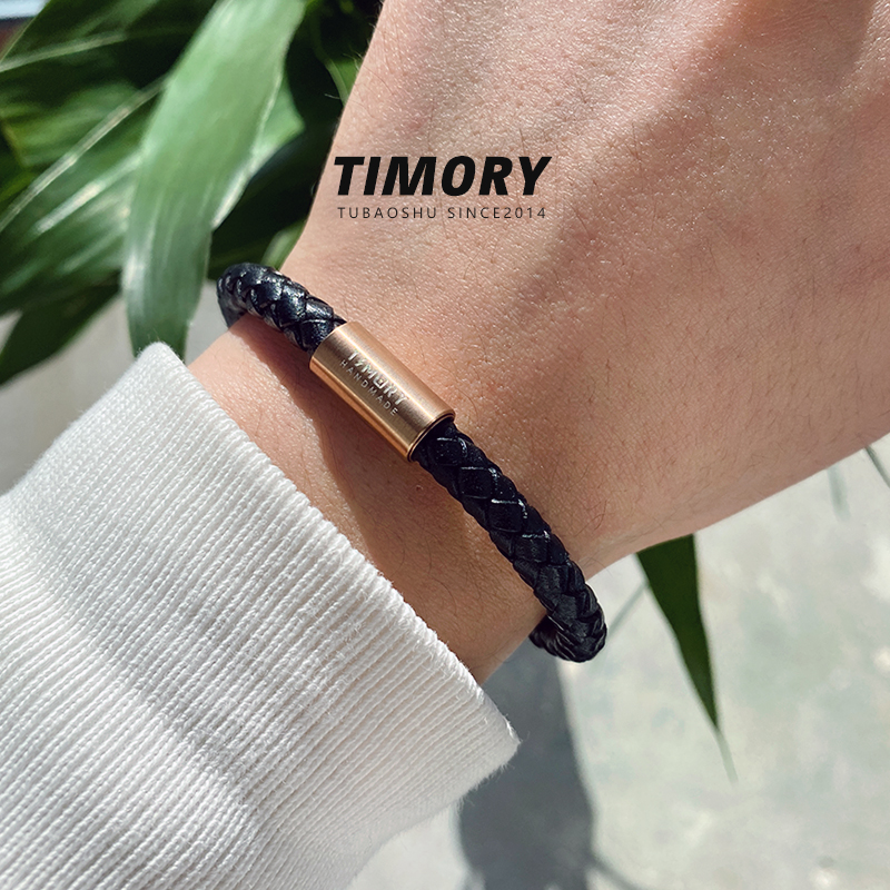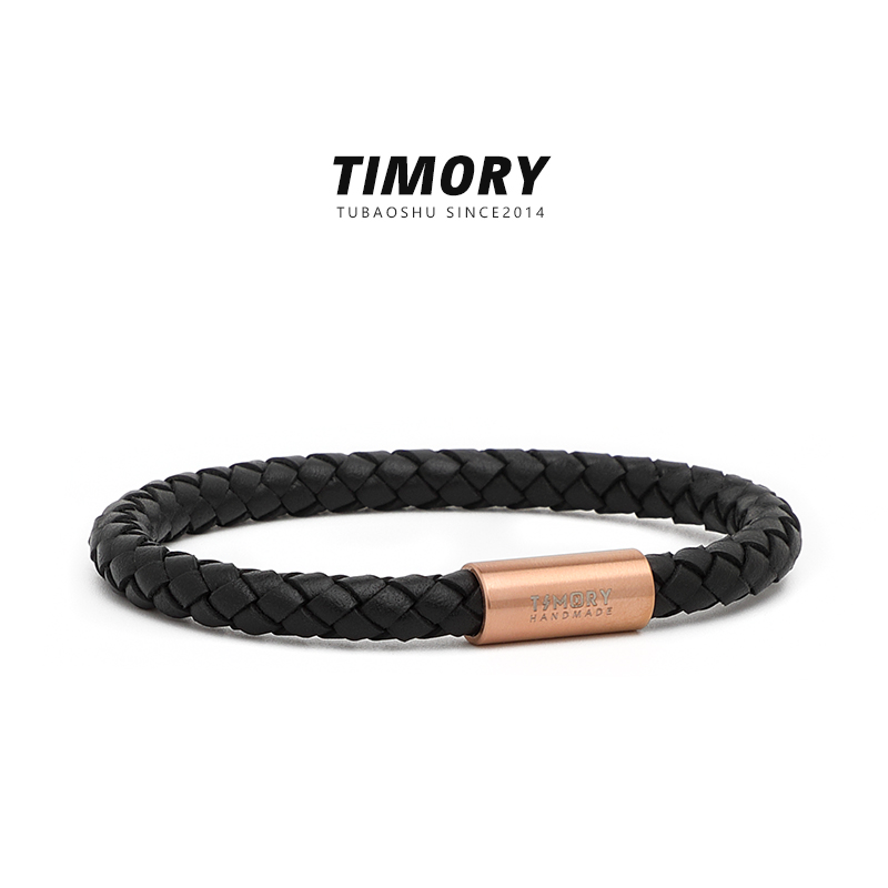 简约头层牛皮手链男玫瑰金复古编织真皮手绳女情侣手环刻字手饰品