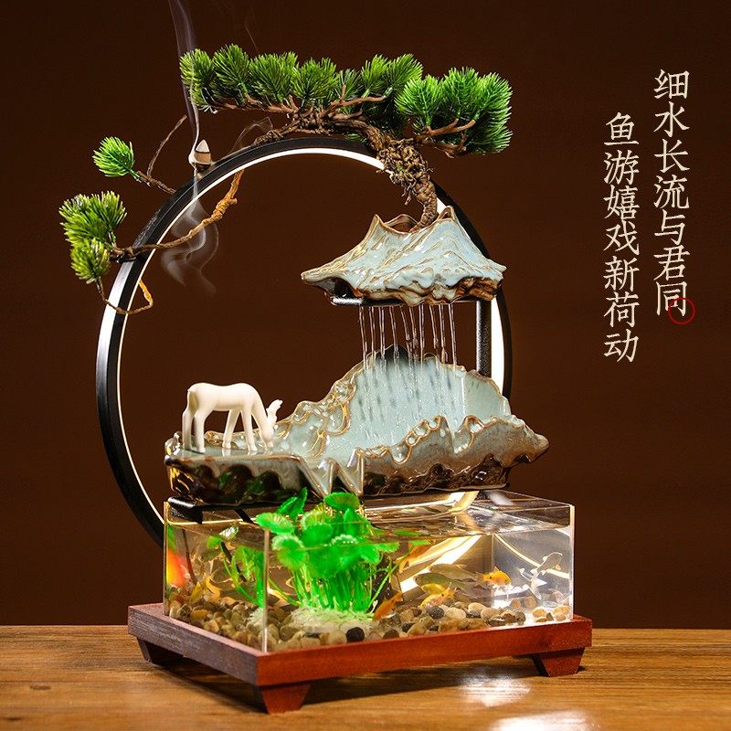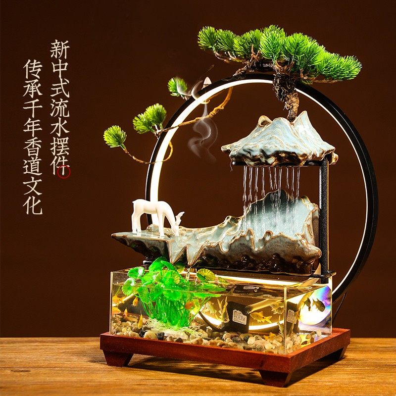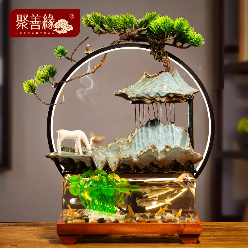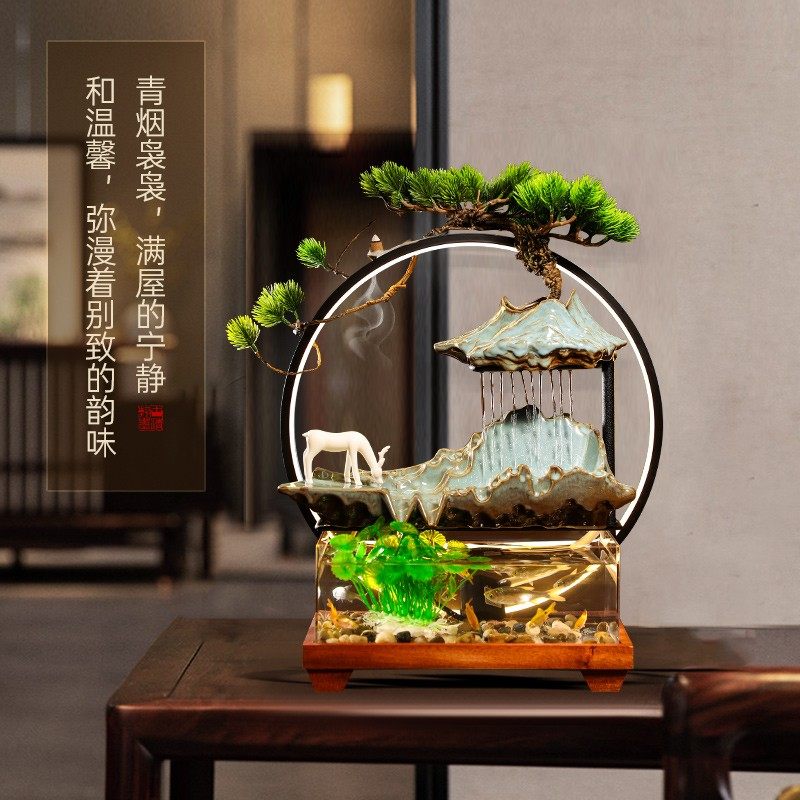 极速招财流水e摆件创意家居水景鱼缸循环水客厅办公室装饰乔迁开