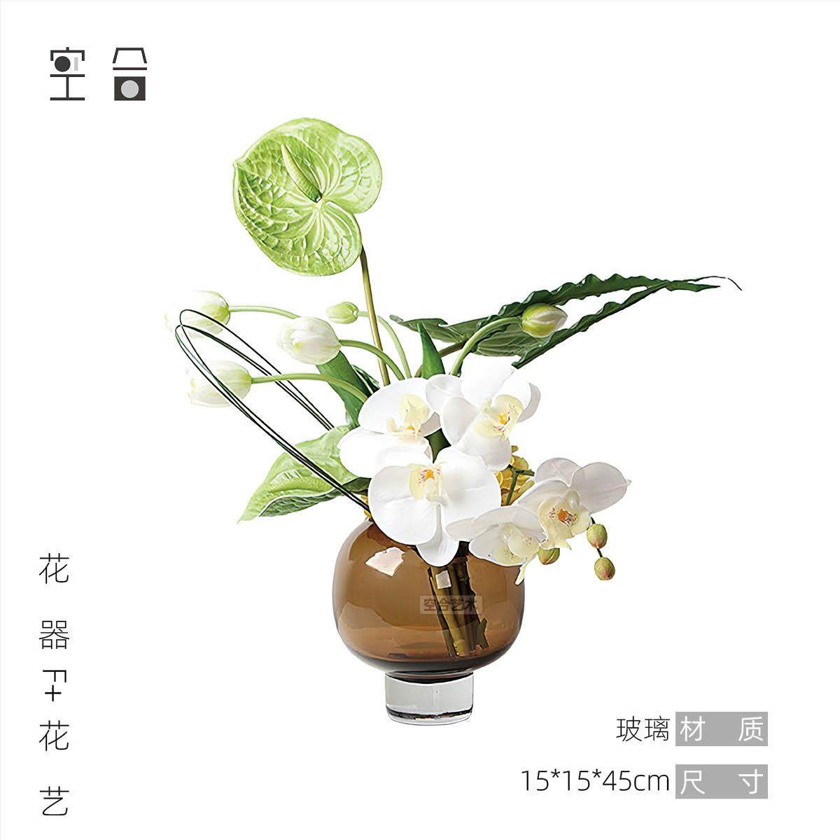 空合 现代轻奢玻璃插花器 售楼处洽谈桌茶几桌花设计感装饰品摆件