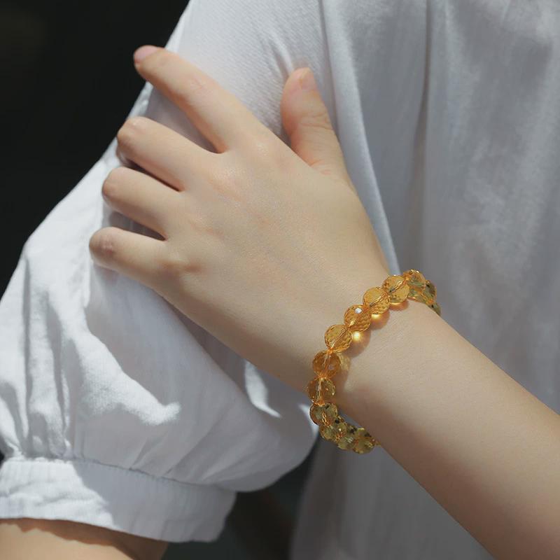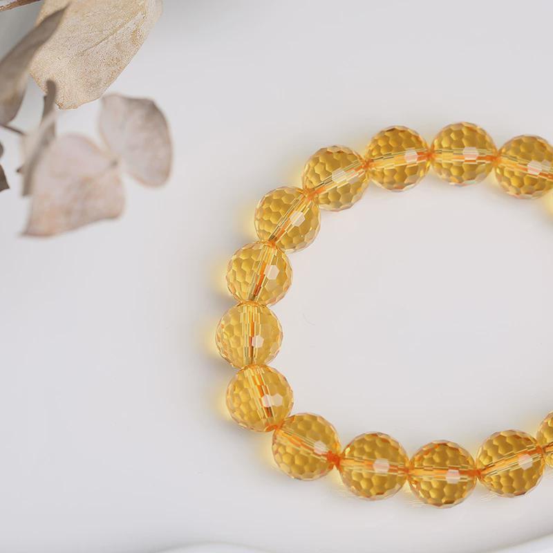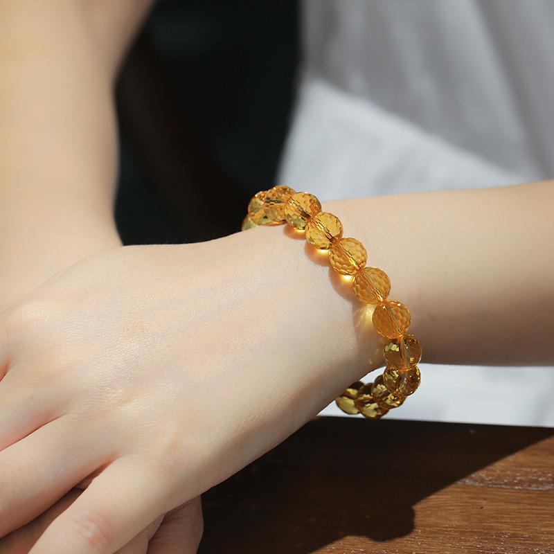 适用天然巴西黄水晶手链暴力黄切割面刻面磨面手串男女深橘黄晶送