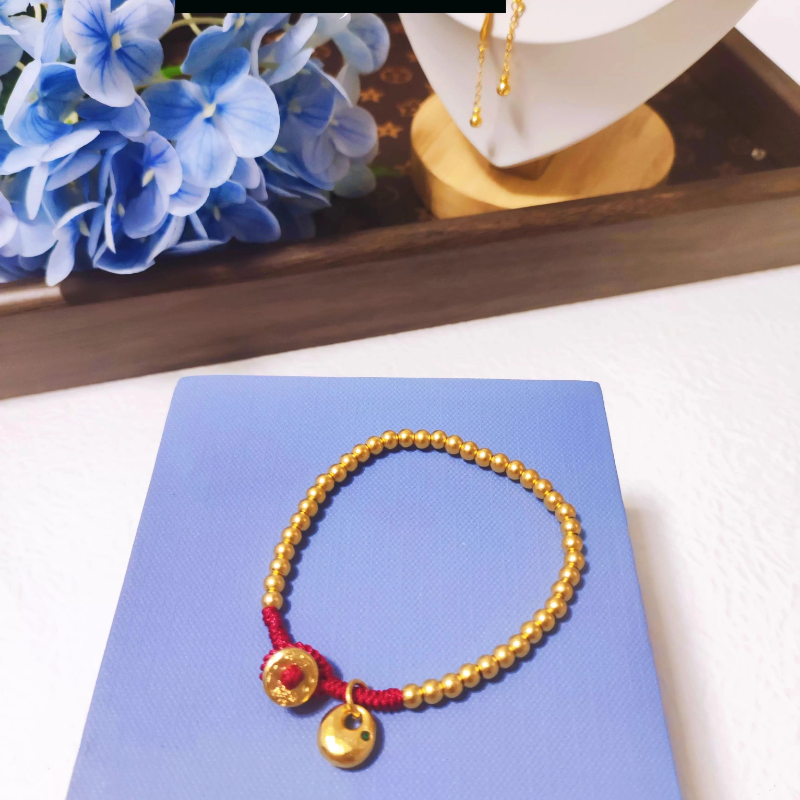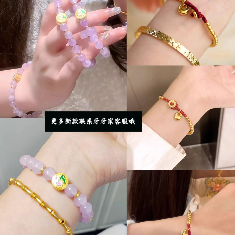 新中式国潮风古法鎏金手工串珠红绳平安喜乐小胖福小竹节手串