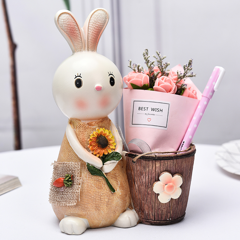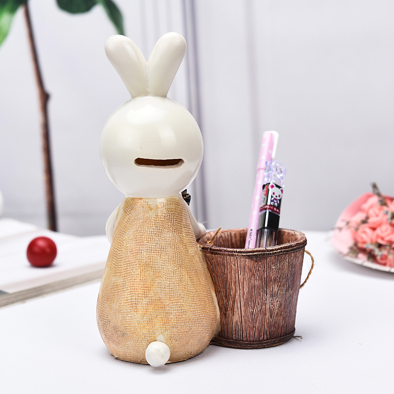 创意多功能笔筒存钱罐卡通兔子办公E桌面装饰品摆件儿童节生日礼
