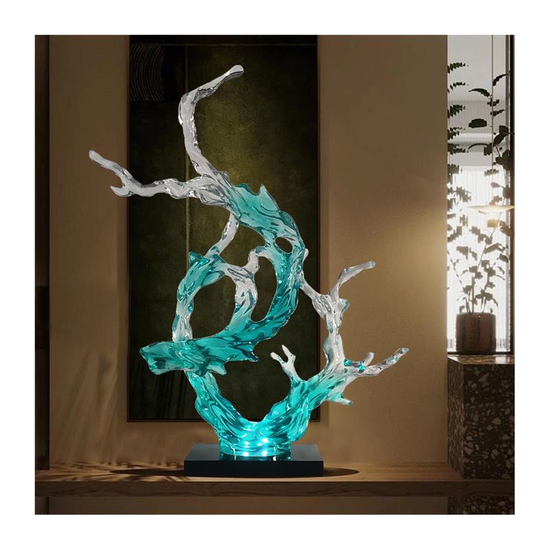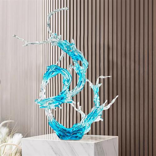 现代简约玄关装饰浪花摆件轻奢高档透明树脂雕塑酒店售楼处工艺品
