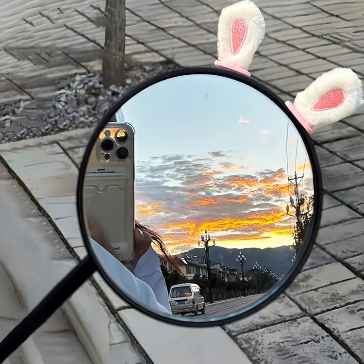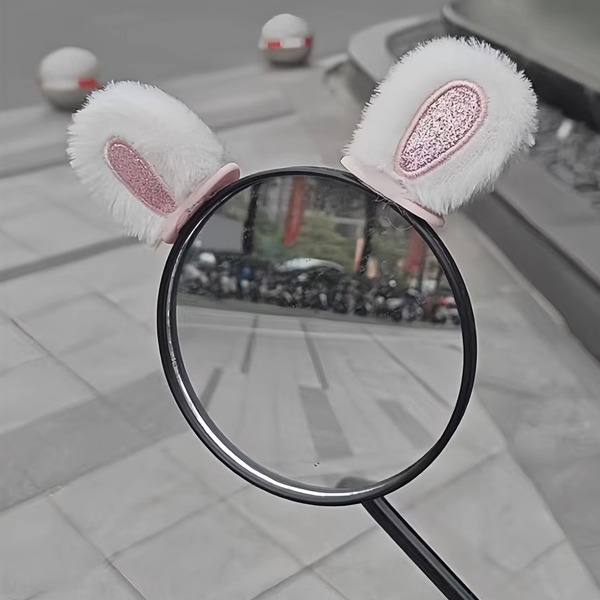 电动车后视镜装饰品挂件毛绒兔耳朵一对可爱兔耳后视镜车载摆件