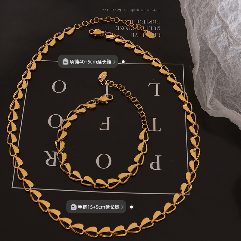 欧美时尚百搭ins风配饰 小众设计小蛮腰镂空桃心项链手链首饰套装