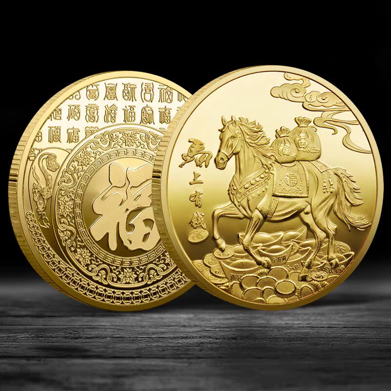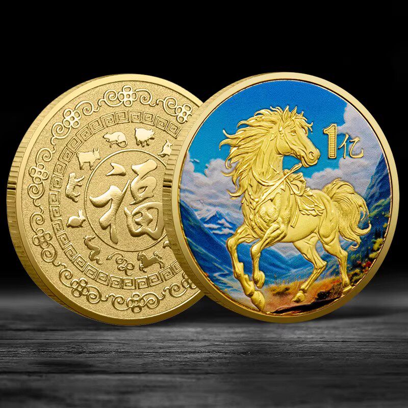 新款2026马年纪念币一亿小目标彩色纪念章生肖马金属收藏礼品批发