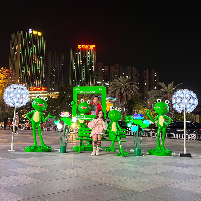 户外卡通青蛙雕塑牛蛙模型店门口摆件玻璃钢商场美陈网红打卡装饰