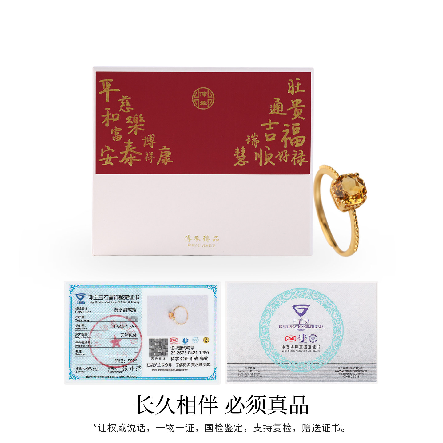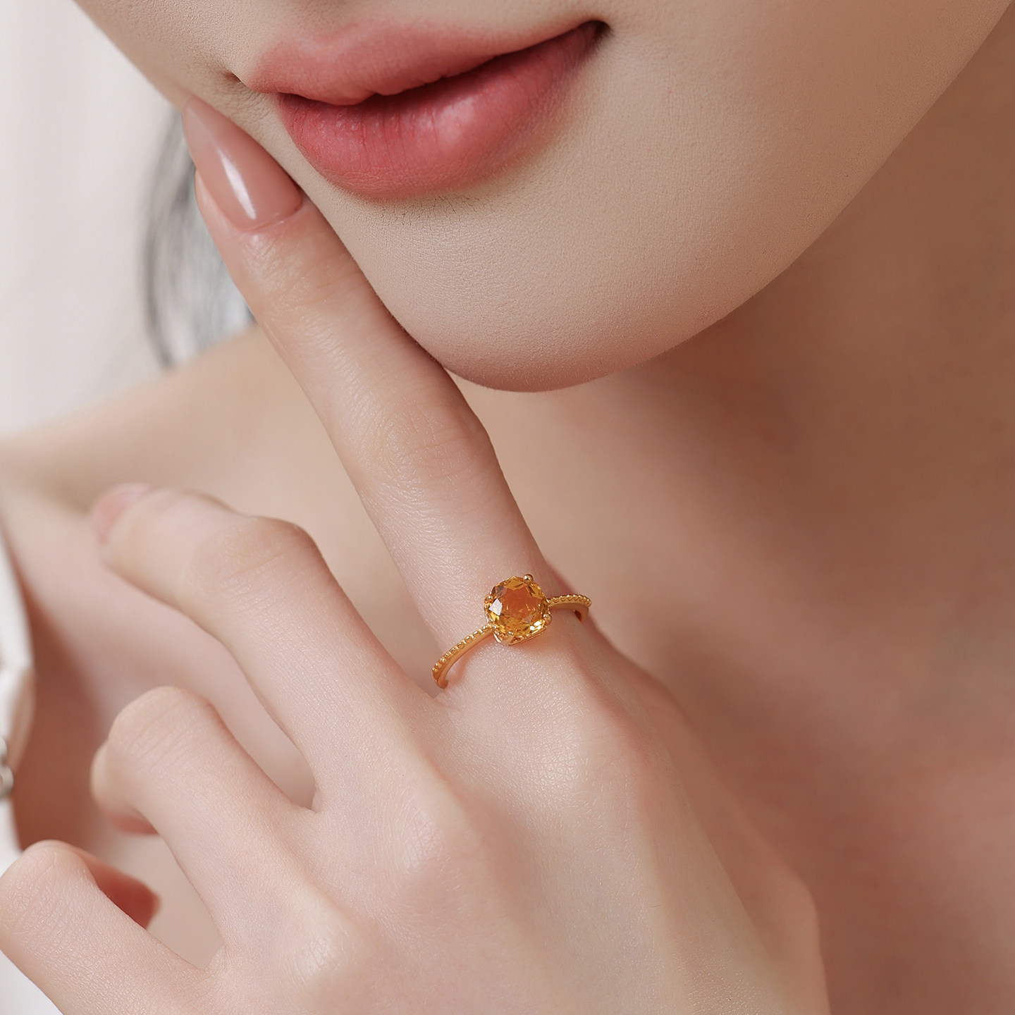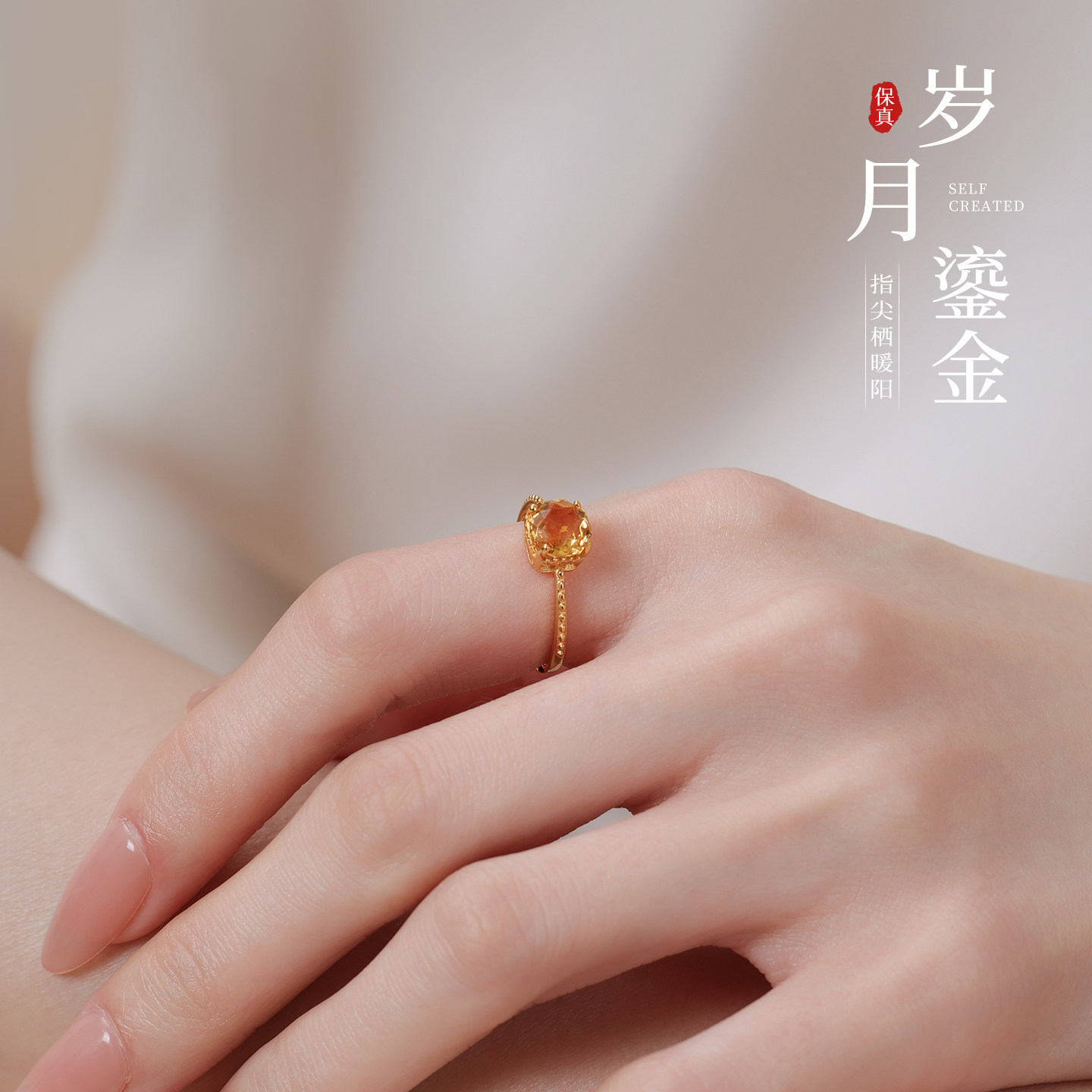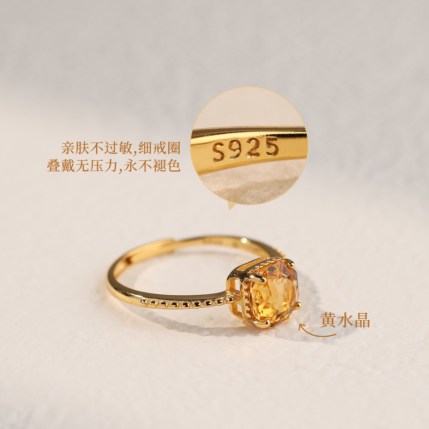 天然黄水晶戒指女小众设计纯银轻奢高级感金黄色宝石招财日进斗金