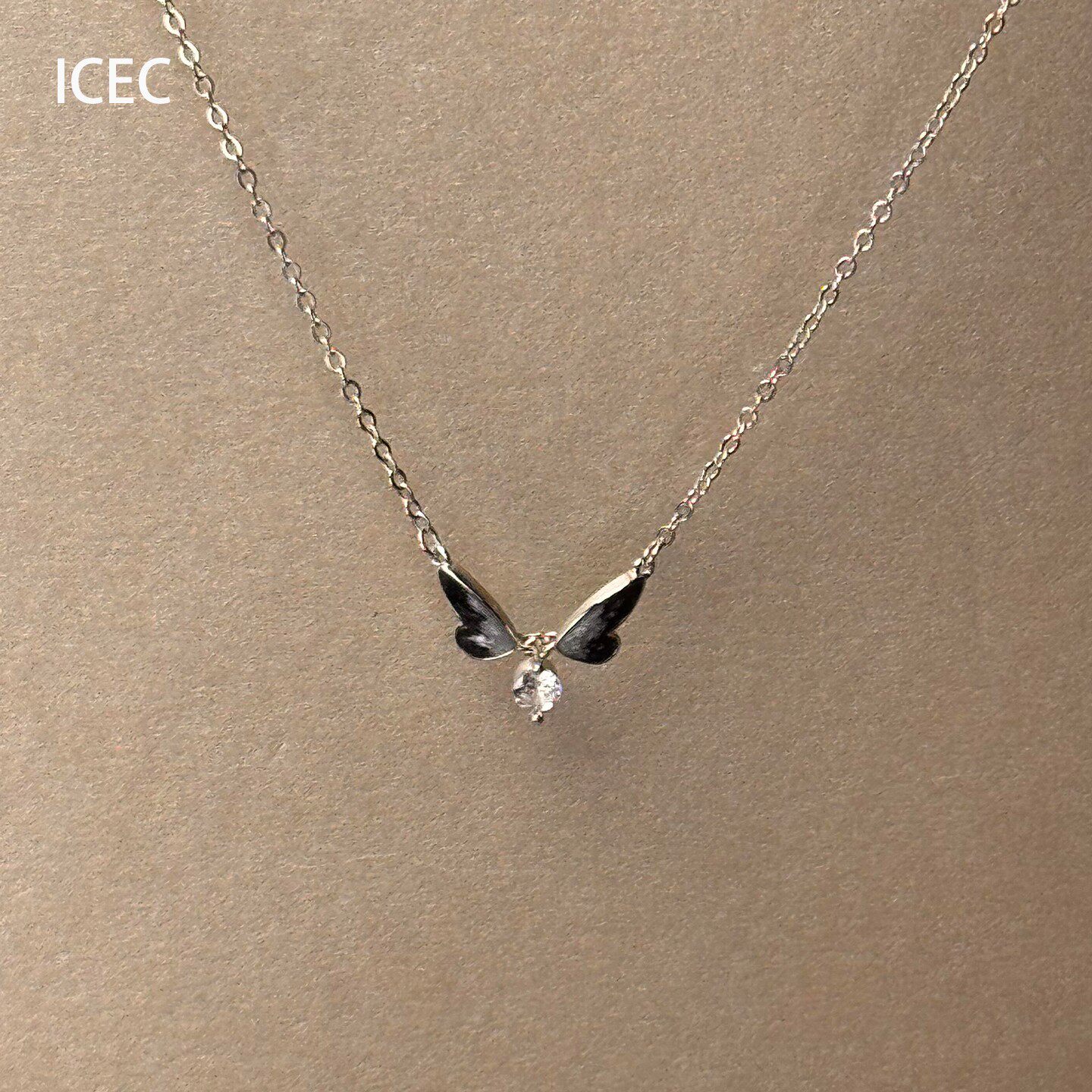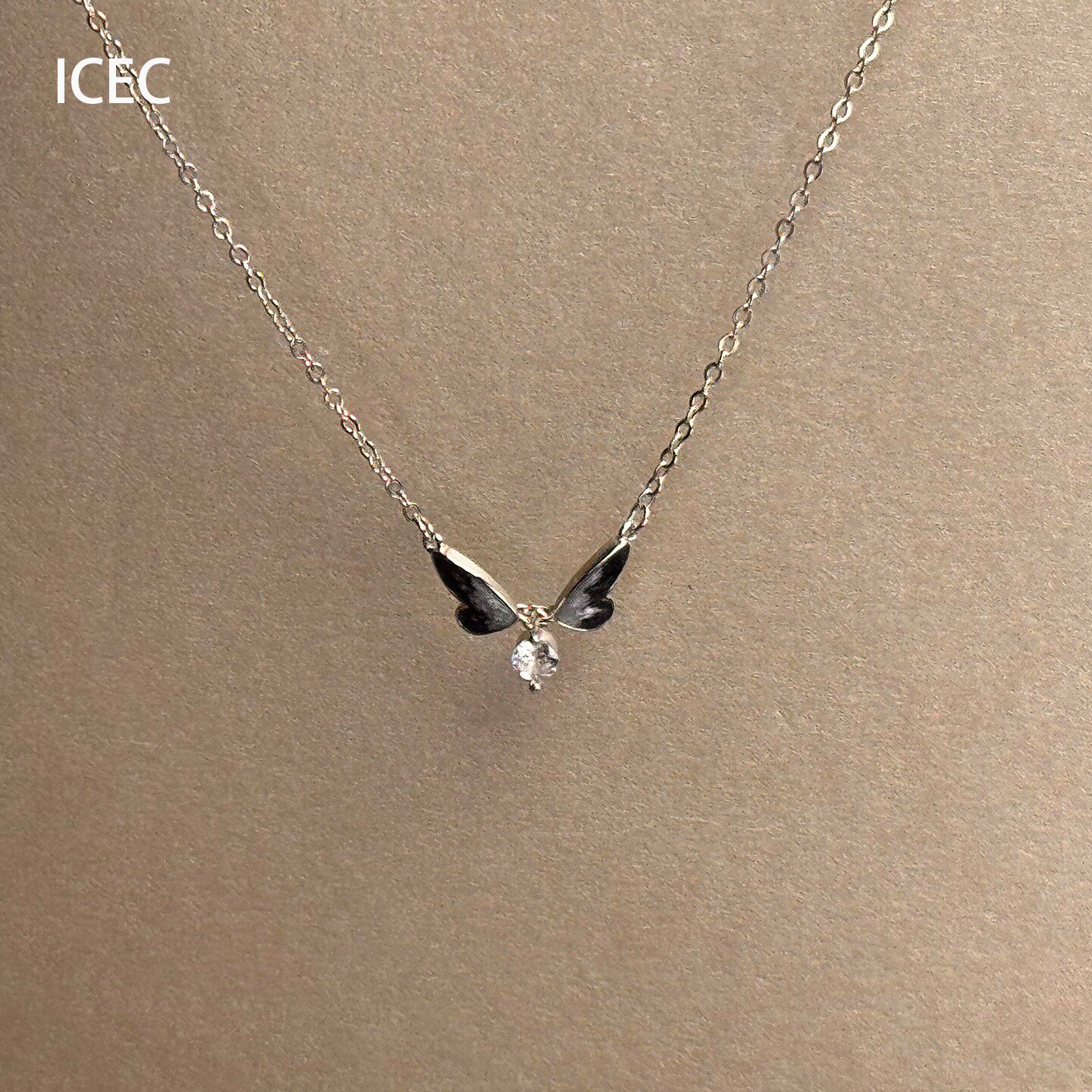 S925纯银紫色闪钻蝴蝶项链女款高级感轻奢小众2026新款爆款毛衣链