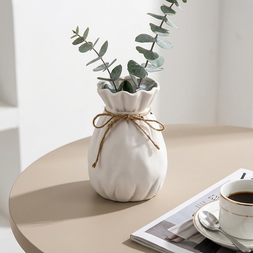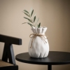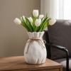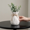 北欧风白色陶瓷花瓶束口设计麻绳装饰摆件家居桌面工艺品