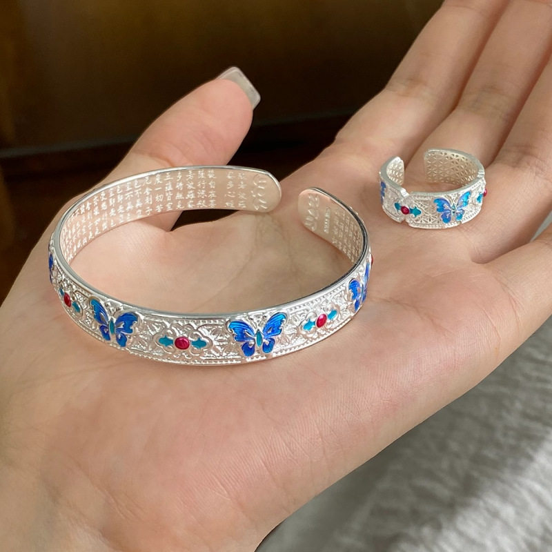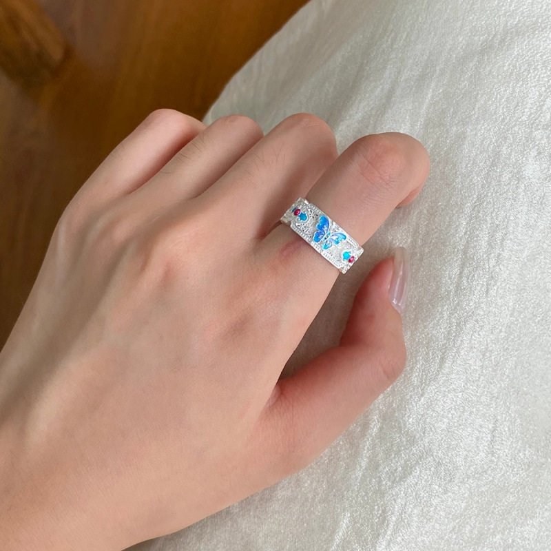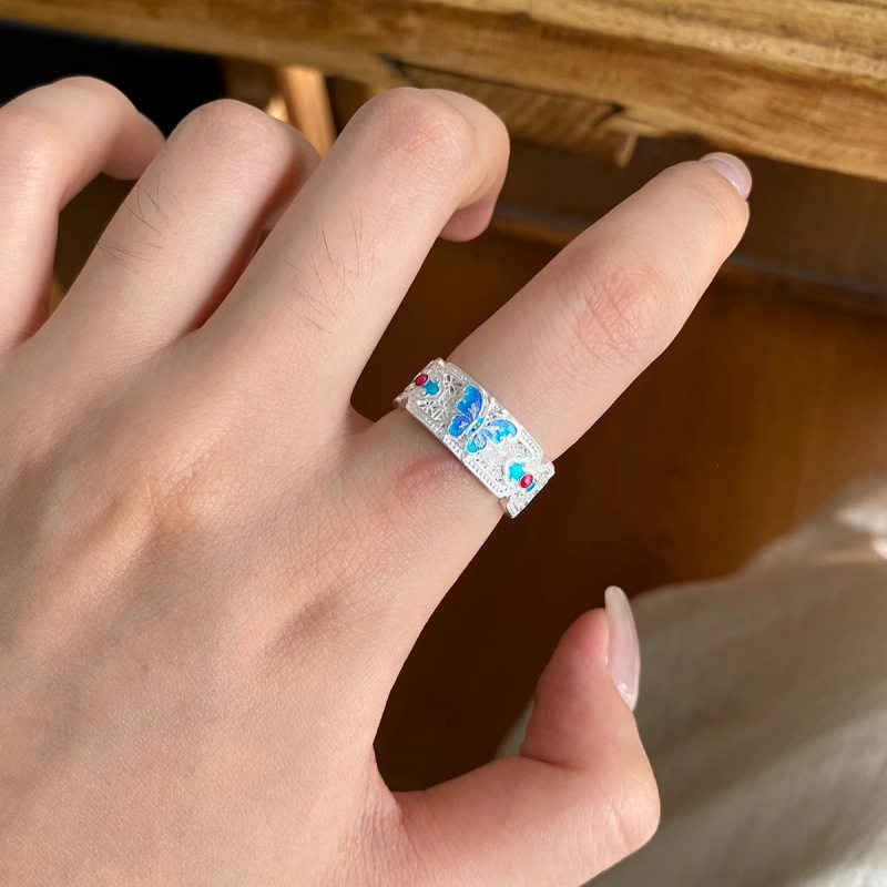 新款复古中蓝色戒指珐琅彩新中式轻奢百搭活口可调节