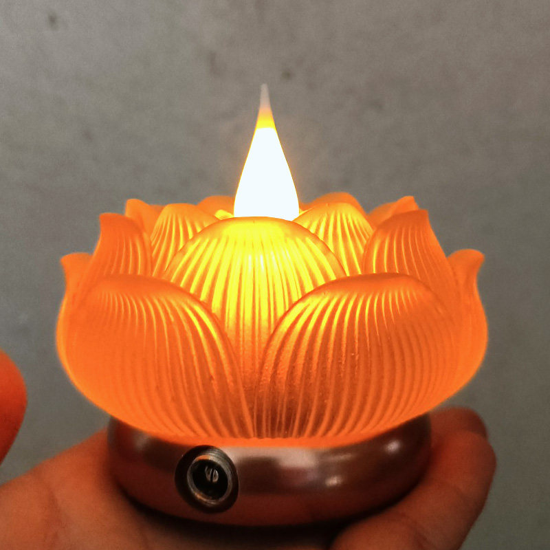 琉璃莲花灯烛台长明灯LED节能佛供灯摆件居家佛堂佛像供奉荷花灯