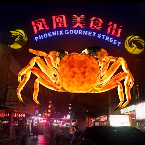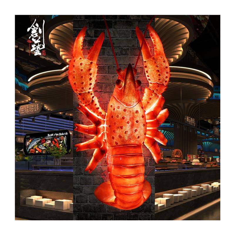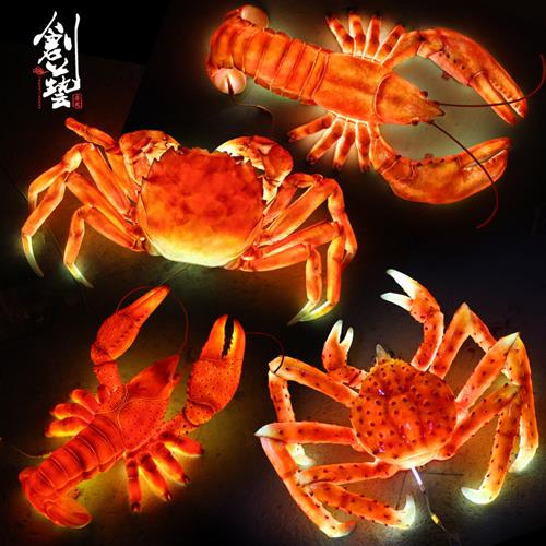 发光龙虾模型海鲜馆餐厅烧烤门头广告灯玻璃钢箱仿真螃蟹装饰雕塑