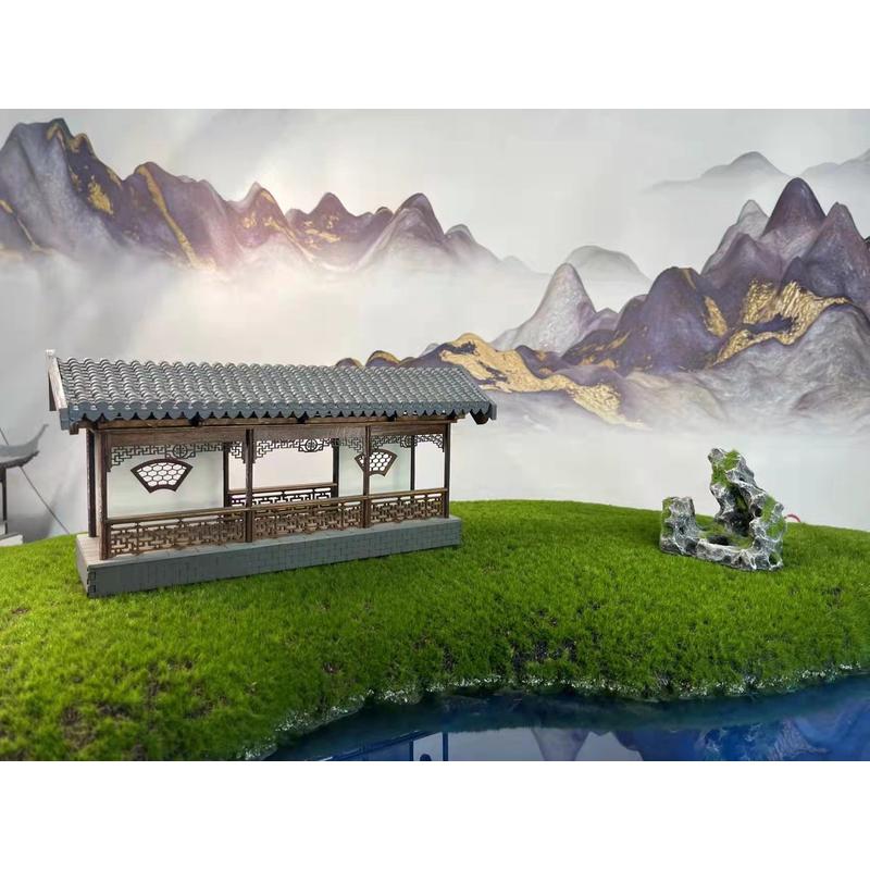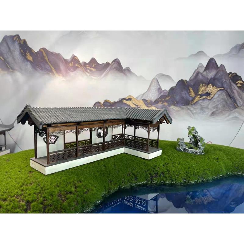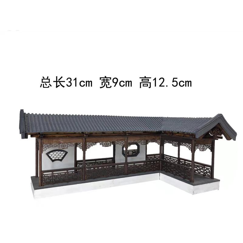 热销古风建筑房屋模型木制模型拼装长廊建筑房子工艺品微缩古建筑