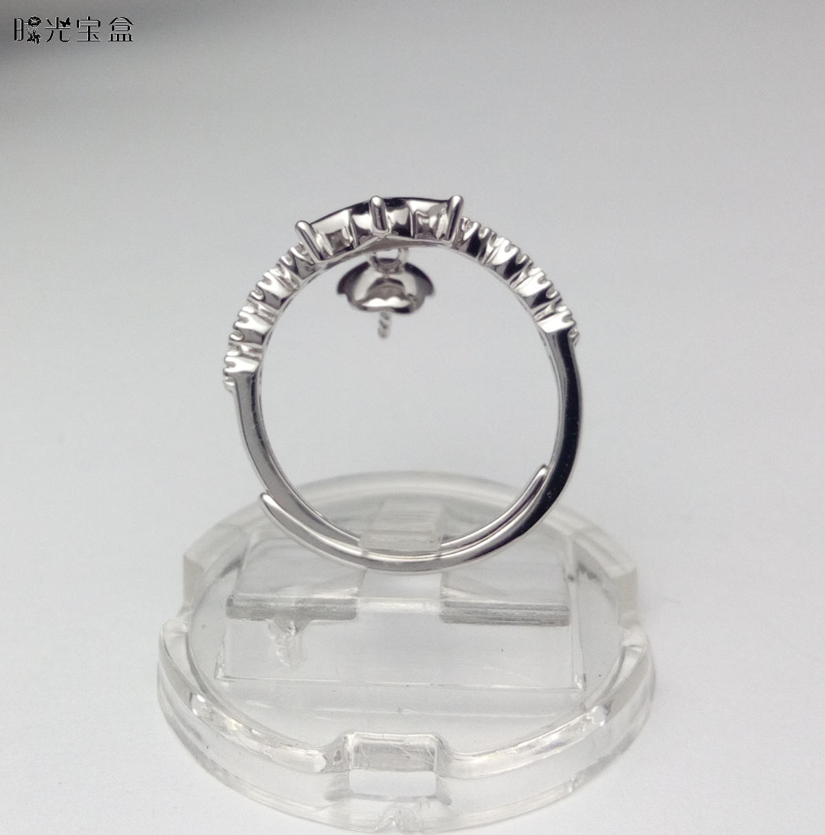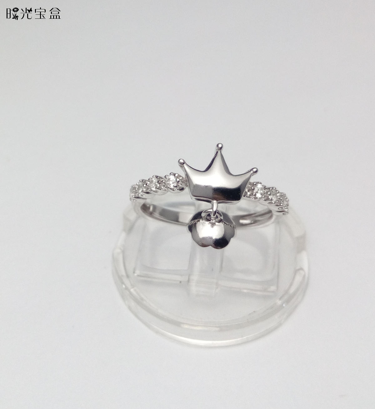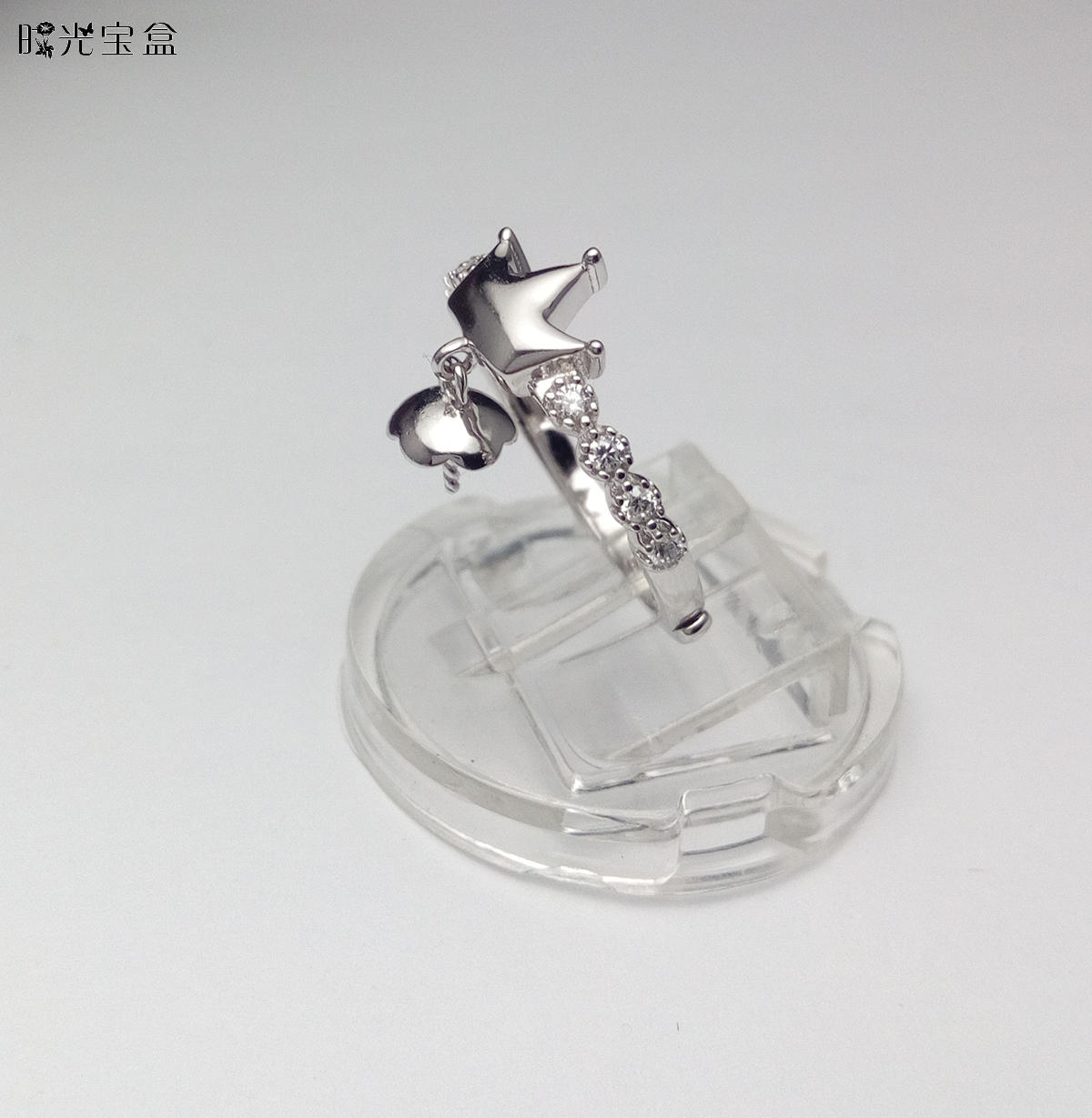 s925纯银镀白金 韩版 小巧精致 皇冠 挂珠 活口女款 戒指托 空托
