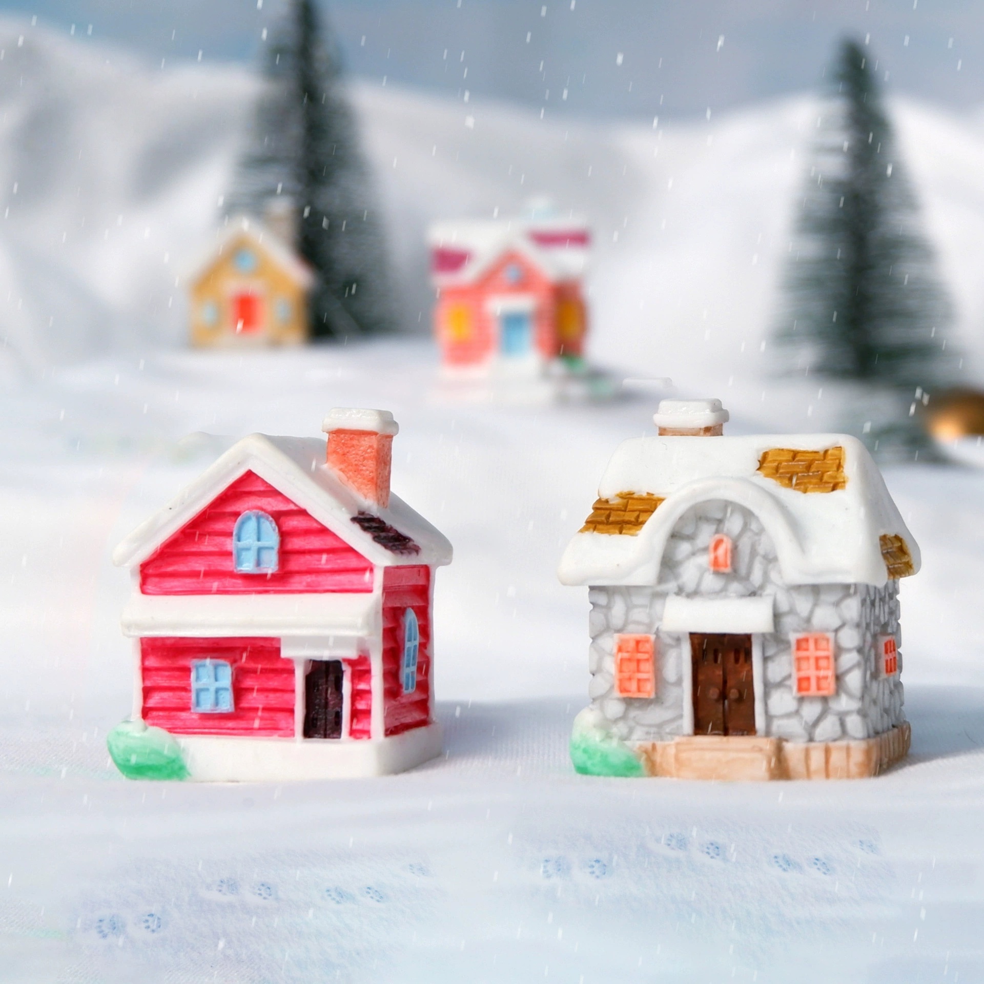 圣诞树脂房子造景diy装饰雪屋布置配件房屋雪房子微景观小摆件