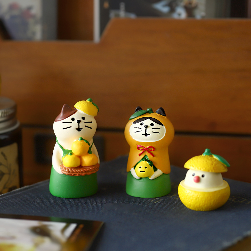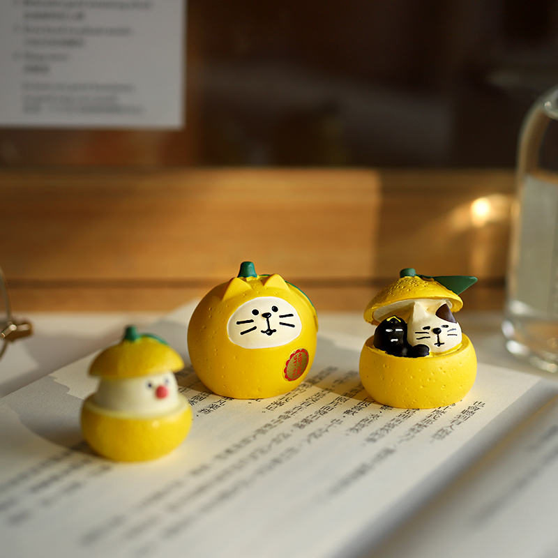 可爱日子 柚子猫咪动物小摆件日式和风创意树脂车载装饰治愈礼物