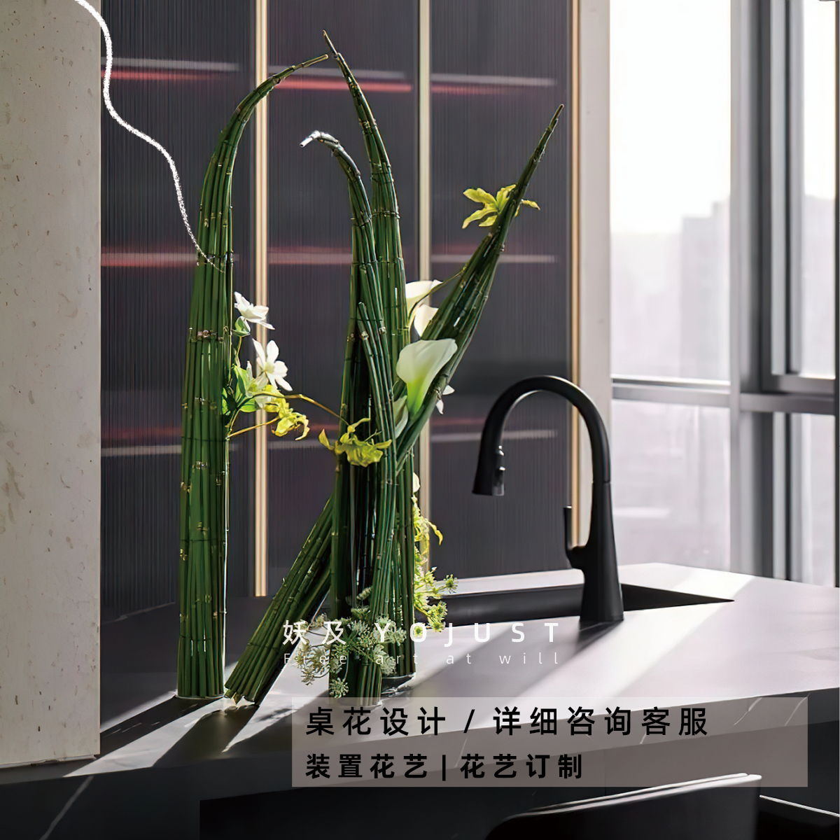 妖及 现代风极简仿真花艺干花手工装置 售楼处样板间端景桌面摆件