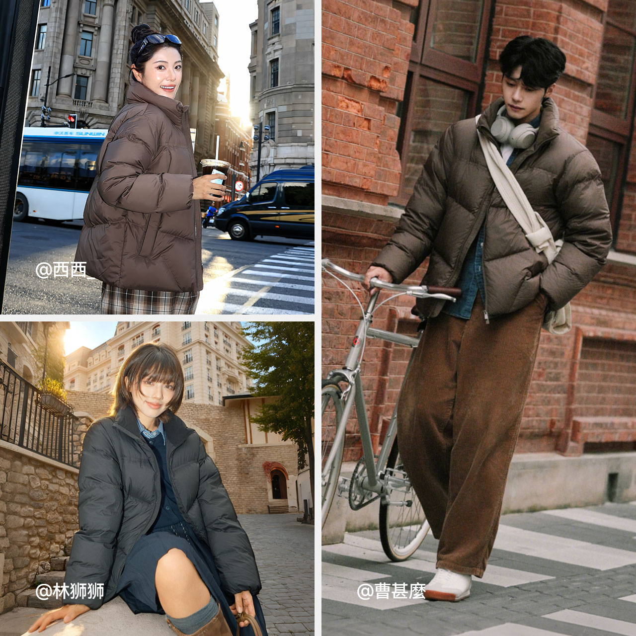 轻松|森马羽绒服男冬90绒子发热三防外套2025新款情侣立领面包服