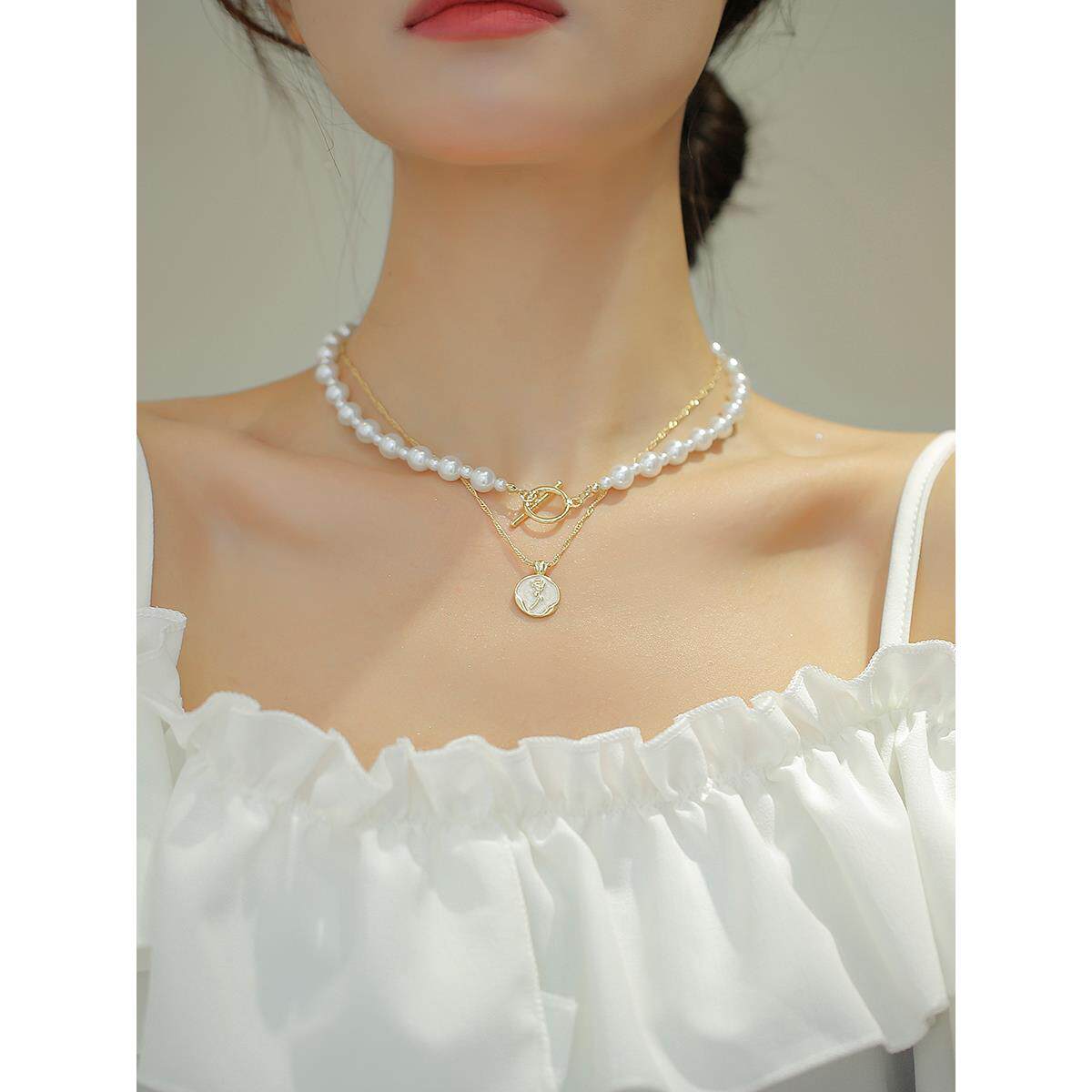 MaisonCleo双层珍珠法式项链2026年新款女小众设计感玫瑰气质锁骨