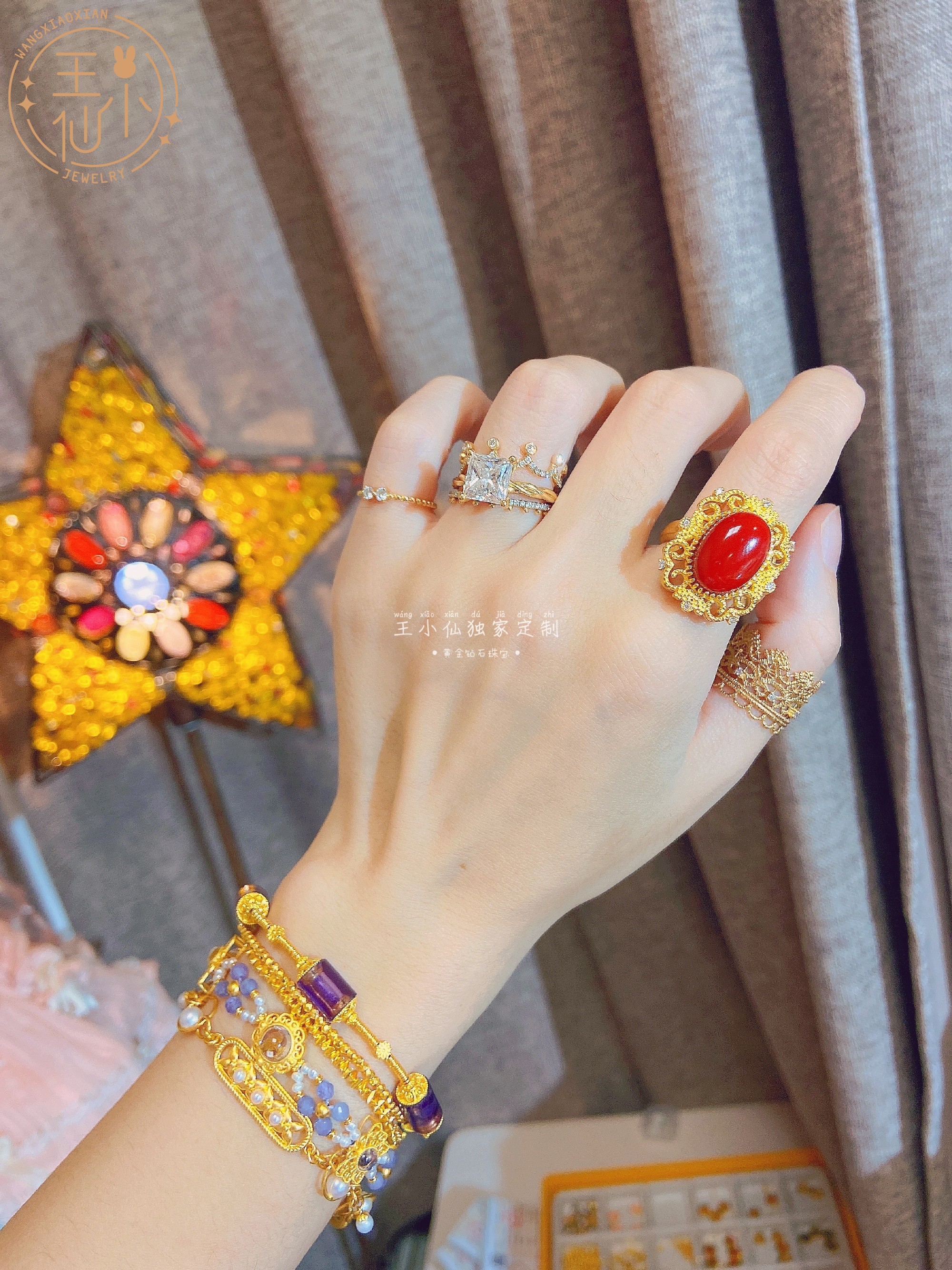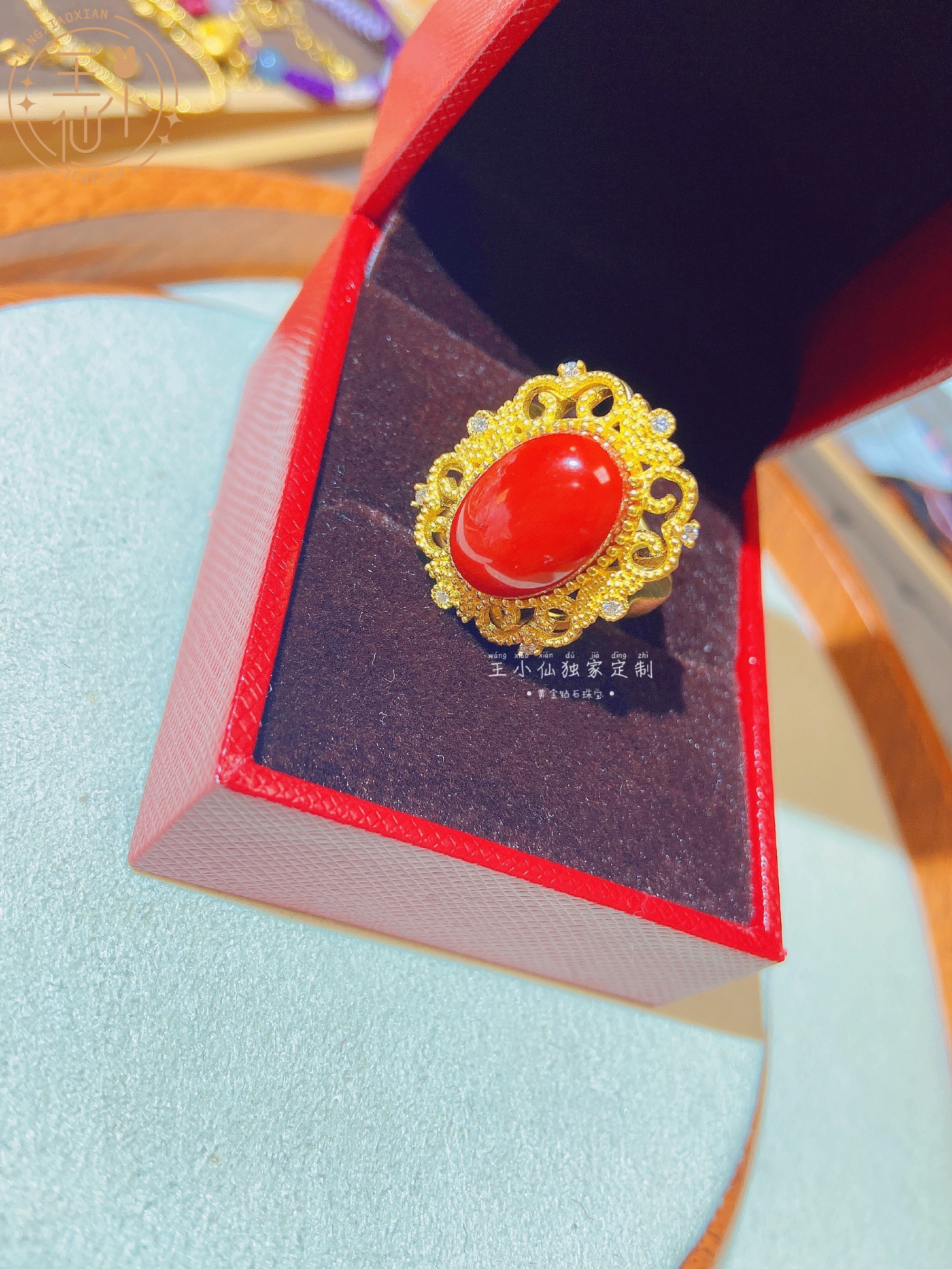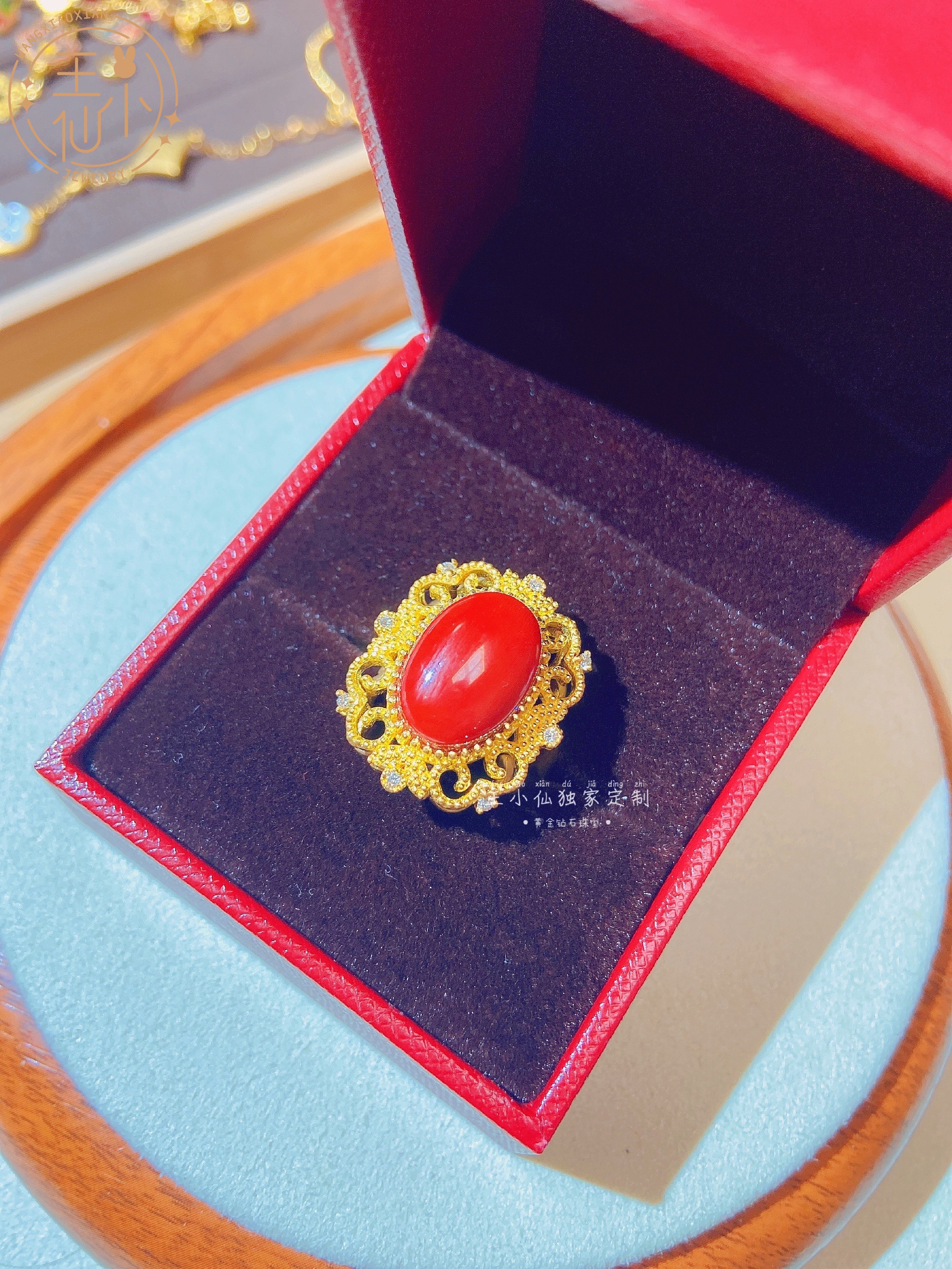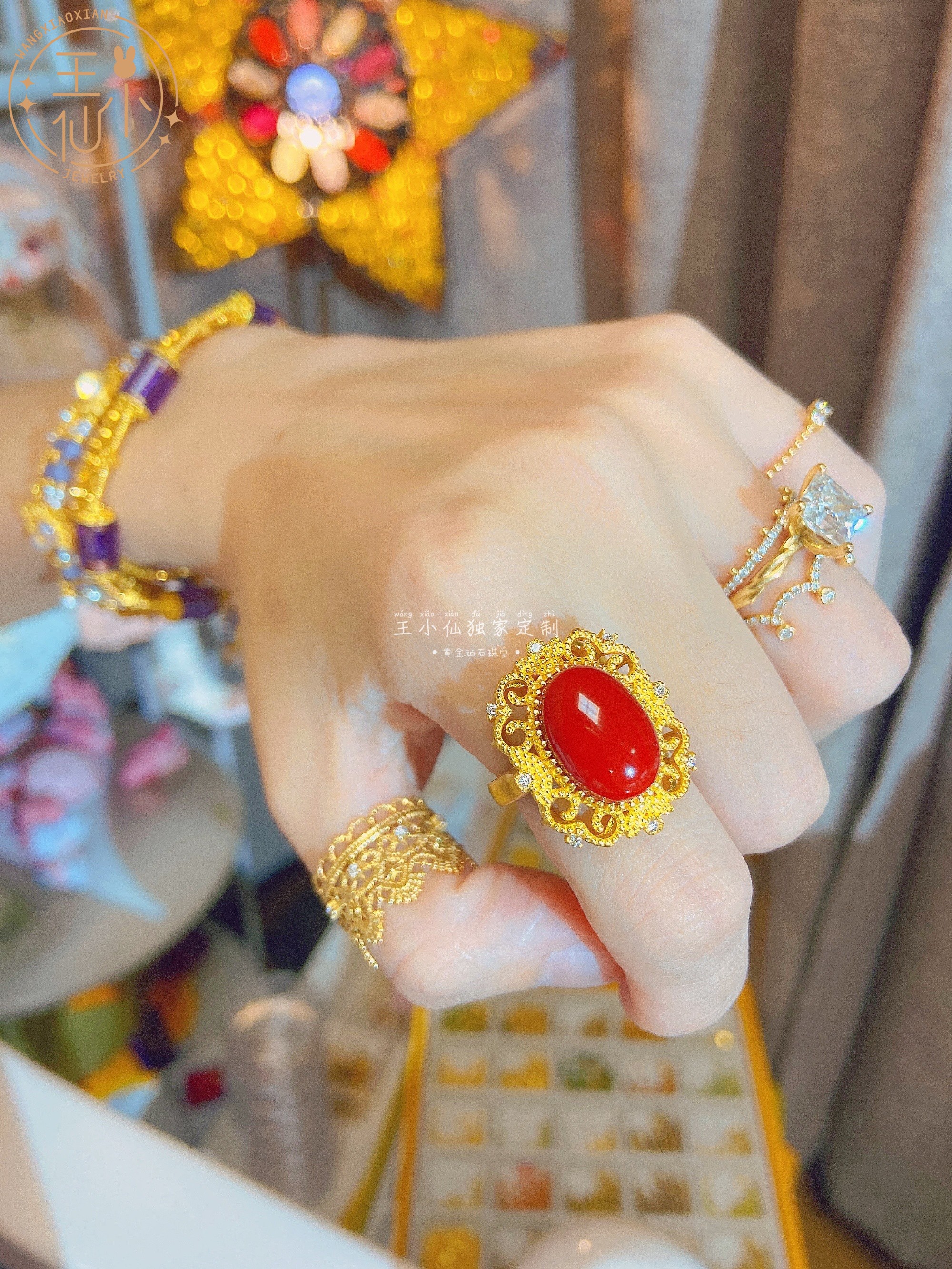 999足金 传承古法金 宫廷花丝 红宝钻石镶嵌 黄金戒指