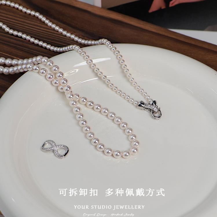 可拆卸扣/多种戴法!超亮正圆无暇珍珠项链毛衣链双层女礼物气质