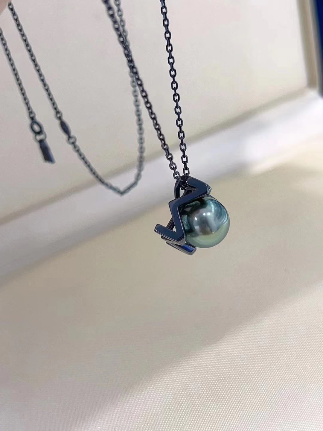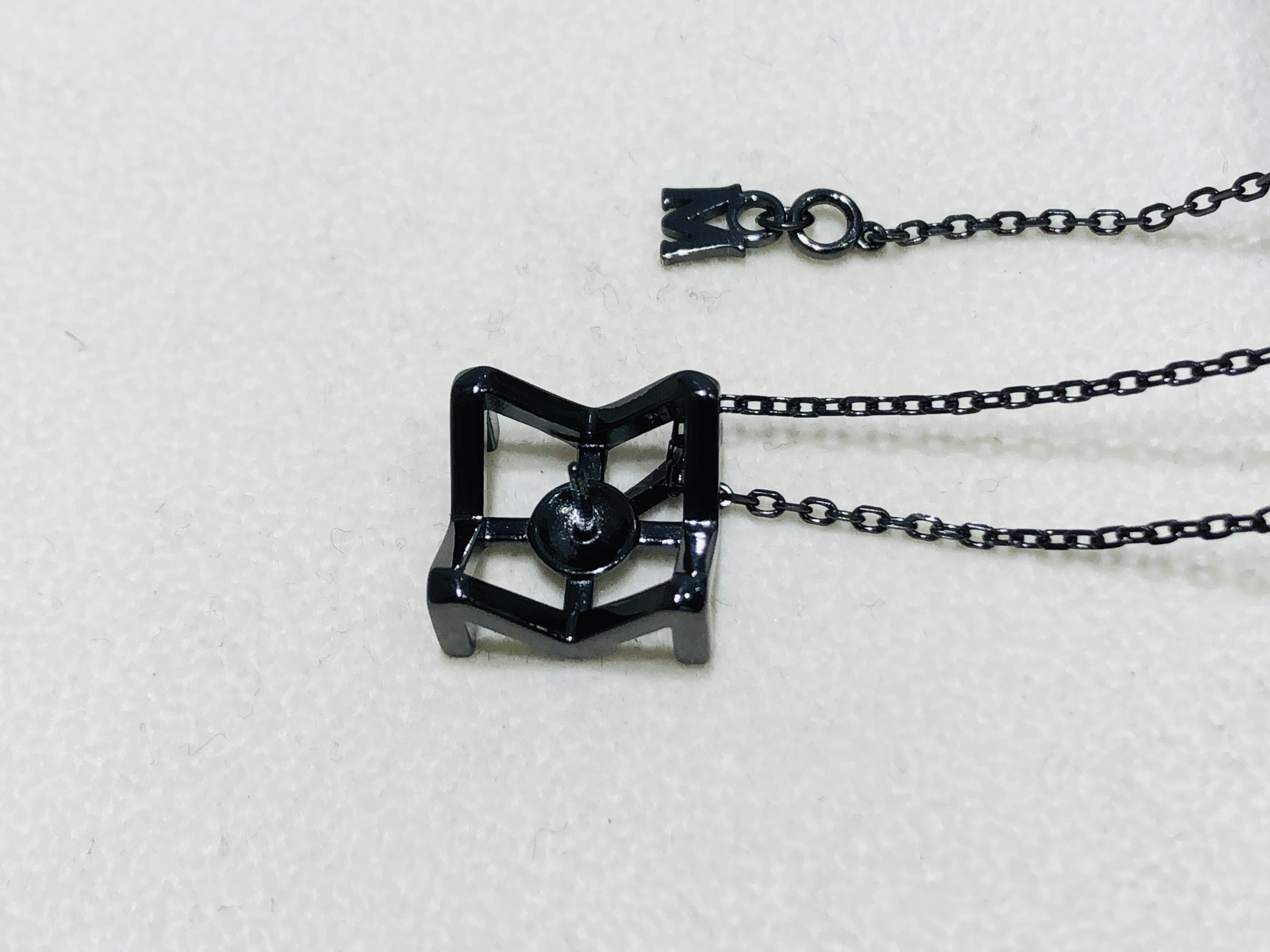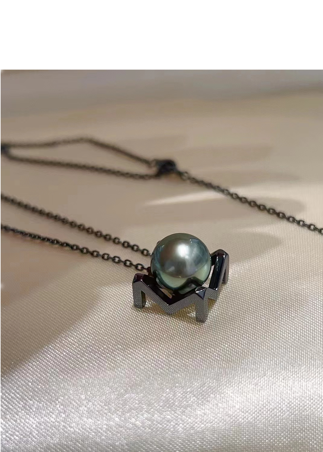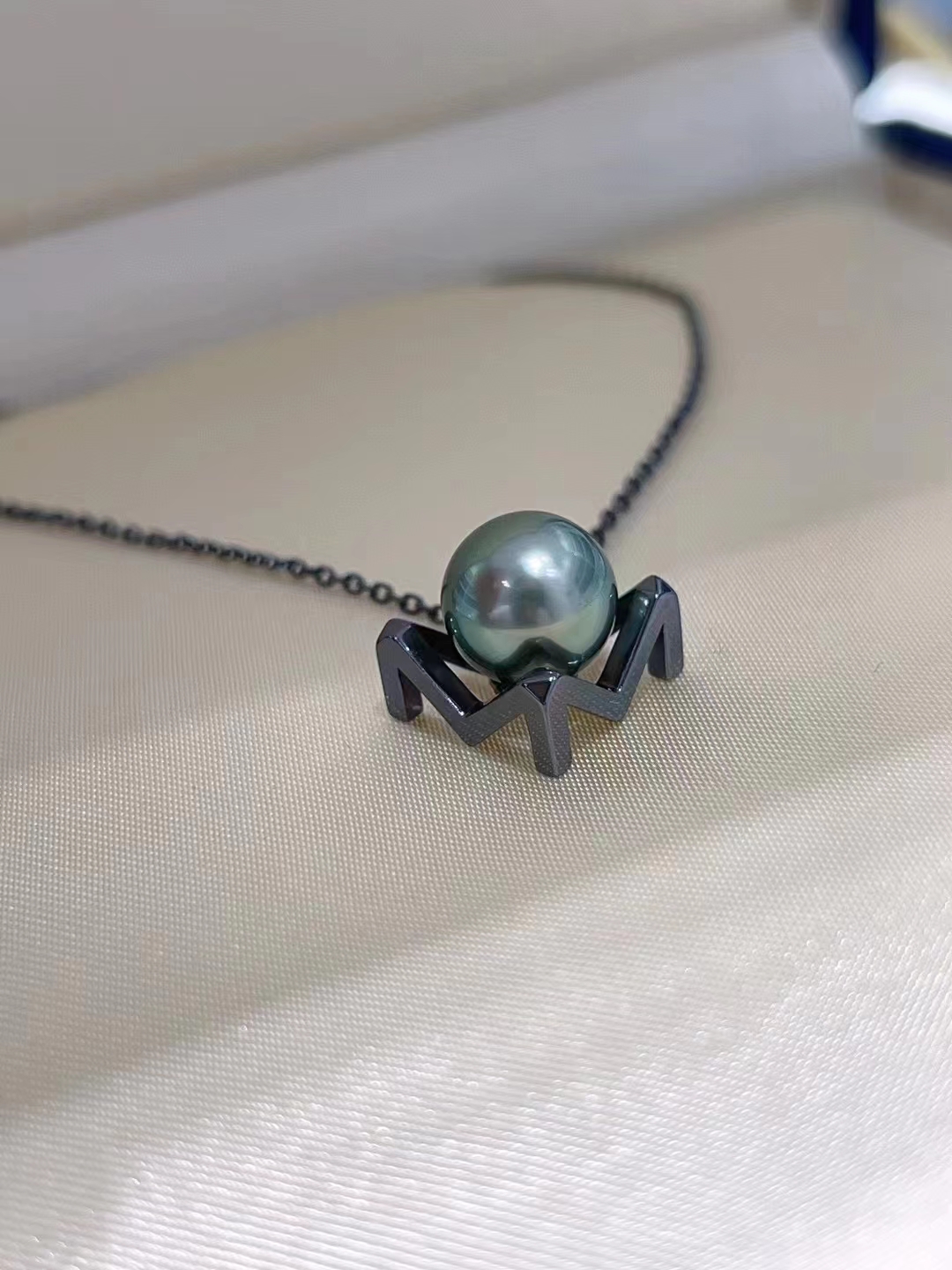 国产 diy 配件 s925纯银 神秘黑系列珍珠吊坠颈饰黑色 高级空托女
