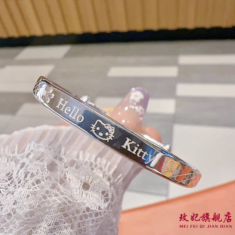 玫妃kt猫纯银手镯足银9999女宝宝中大童学生儿童满月周岁生日礼物