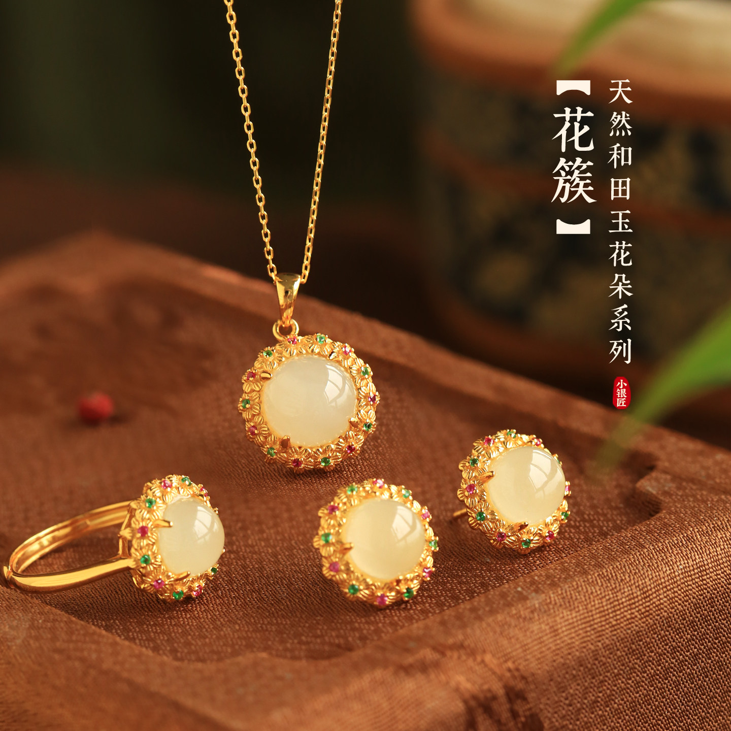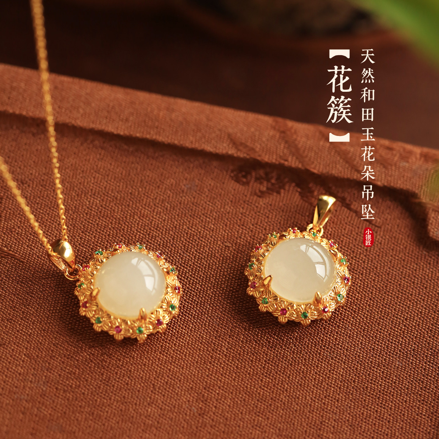 小银匠天然白玉纯银和田玉繁花吊坠女新中式玉石锁骨链项链毛衣链
