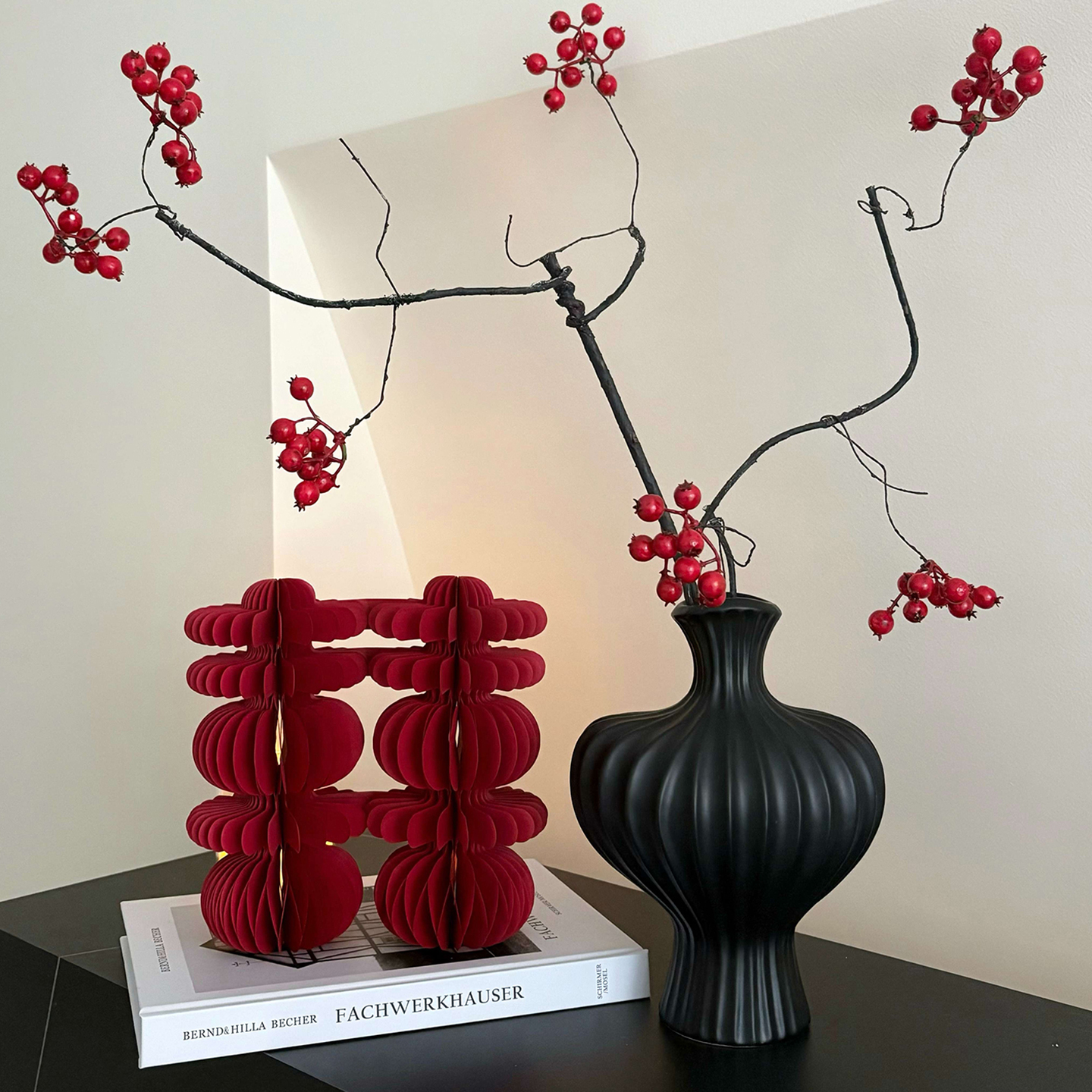 新中式红色仿真花艺发财果装饰品摆件家居氛围感喜庆陶瓷花瓶装设