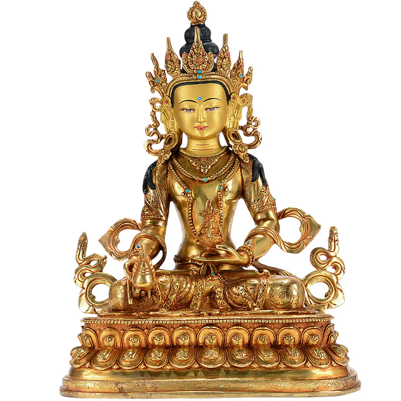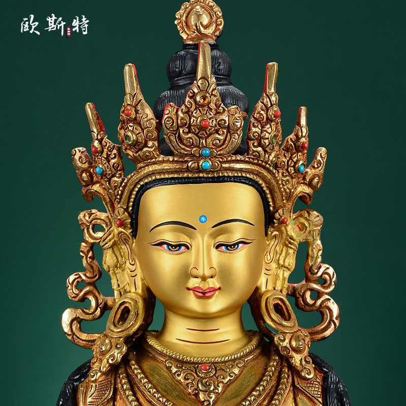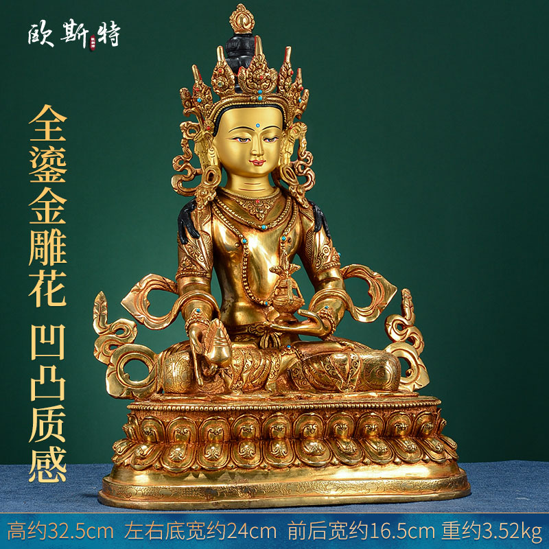 地藏王菩萨中式摆件尼泊尔手工铜全鎏金家居装饰玄关客厅铜像10寸