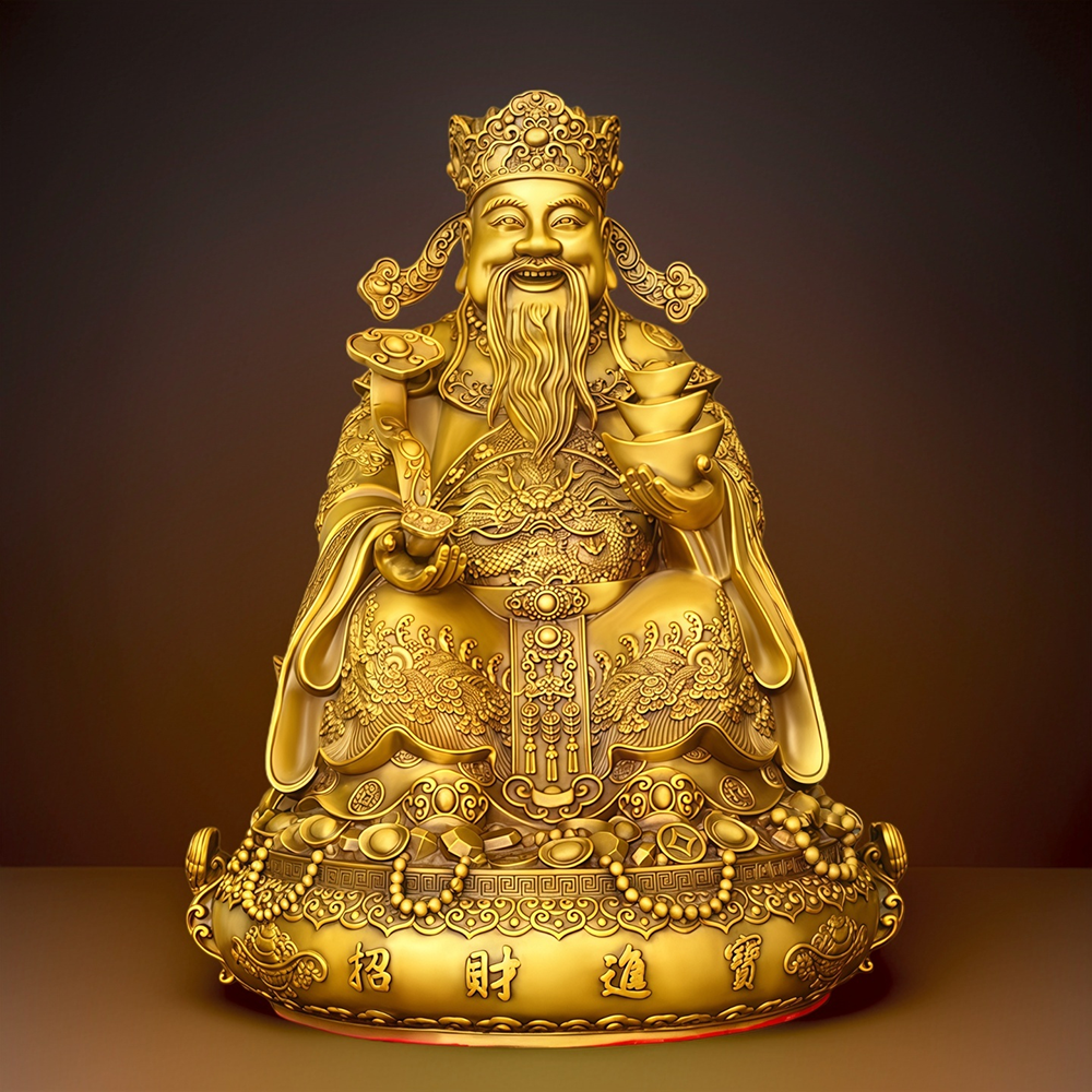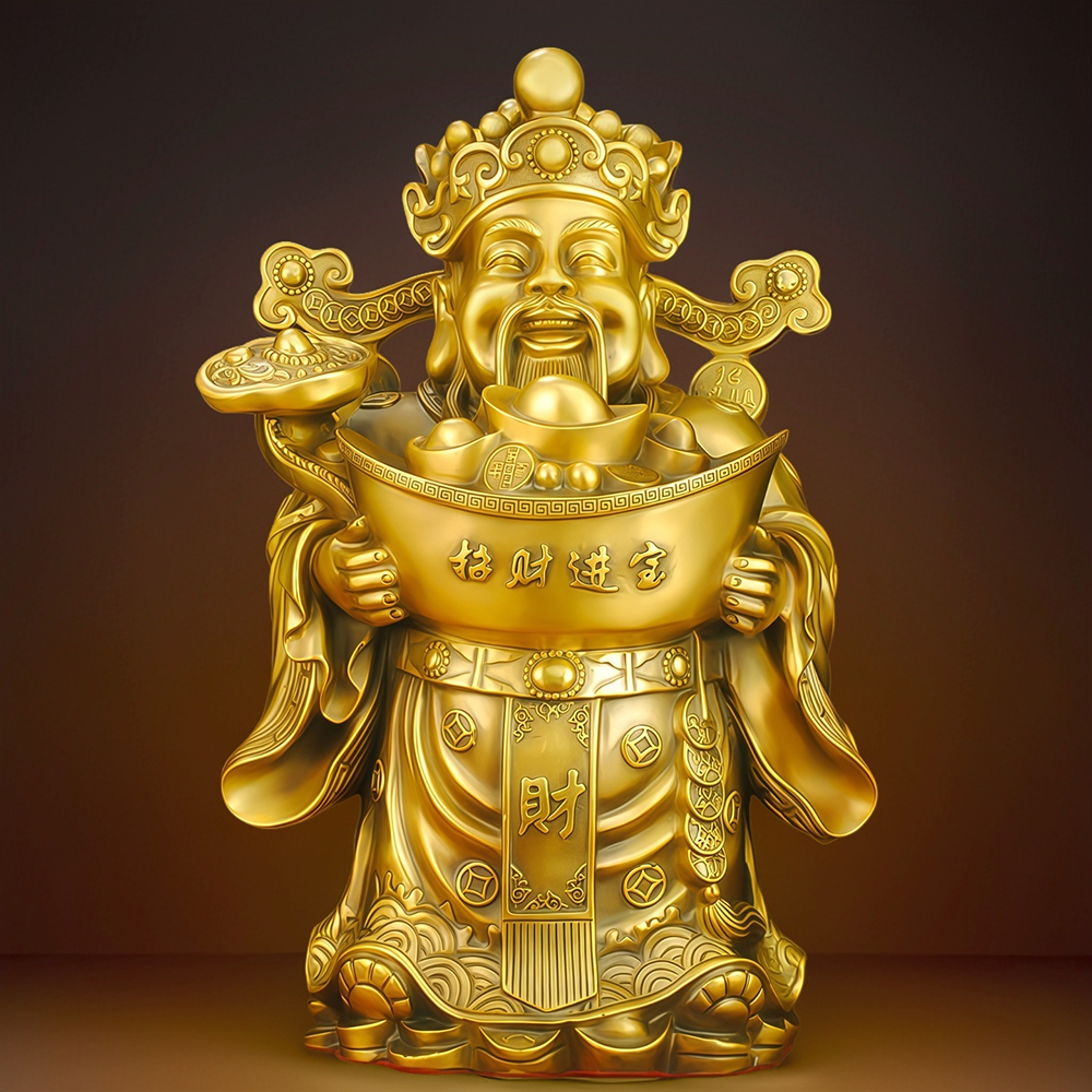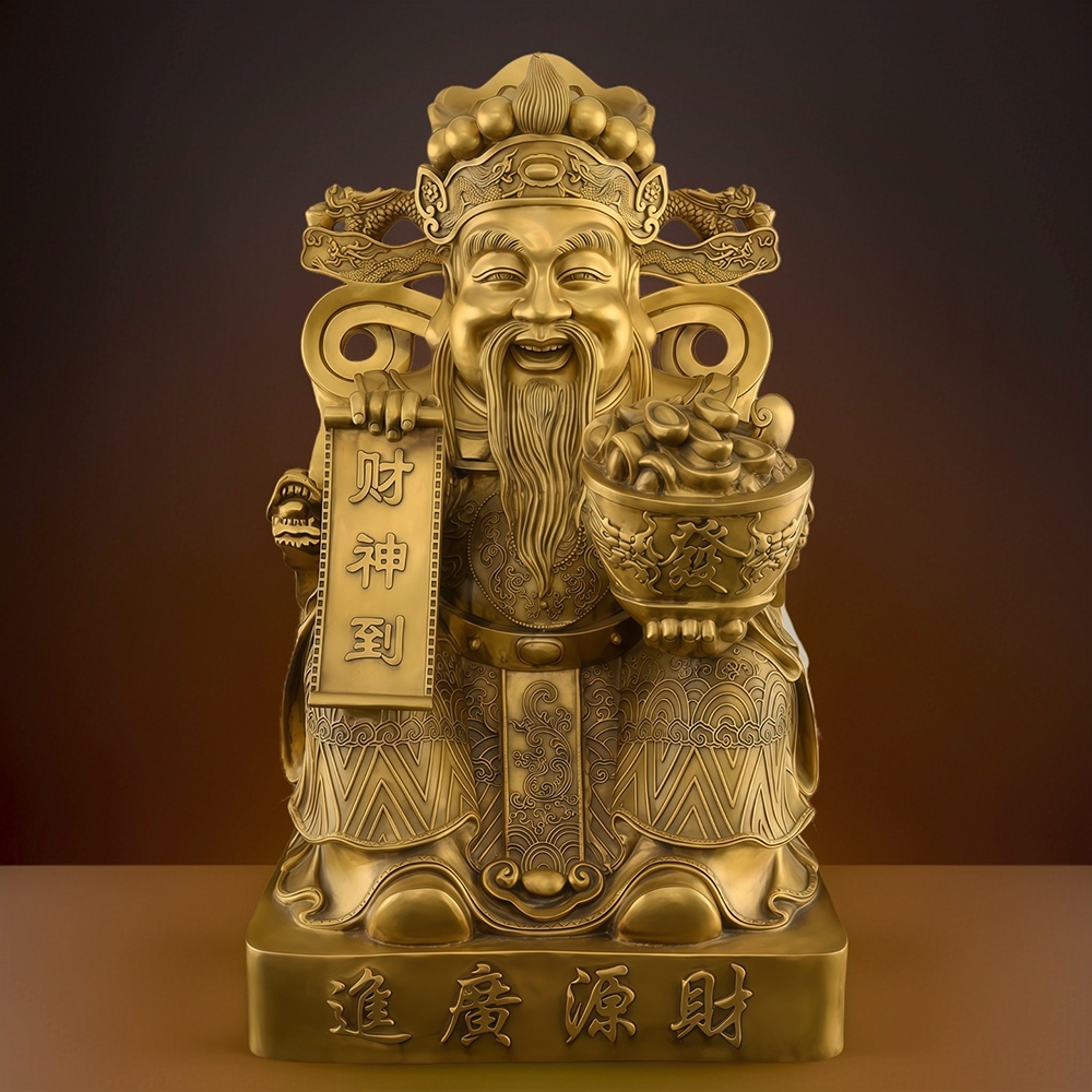 纯黄铜财神爷摆件招财家用供奉财神像办公室店铺开业文财神佛像