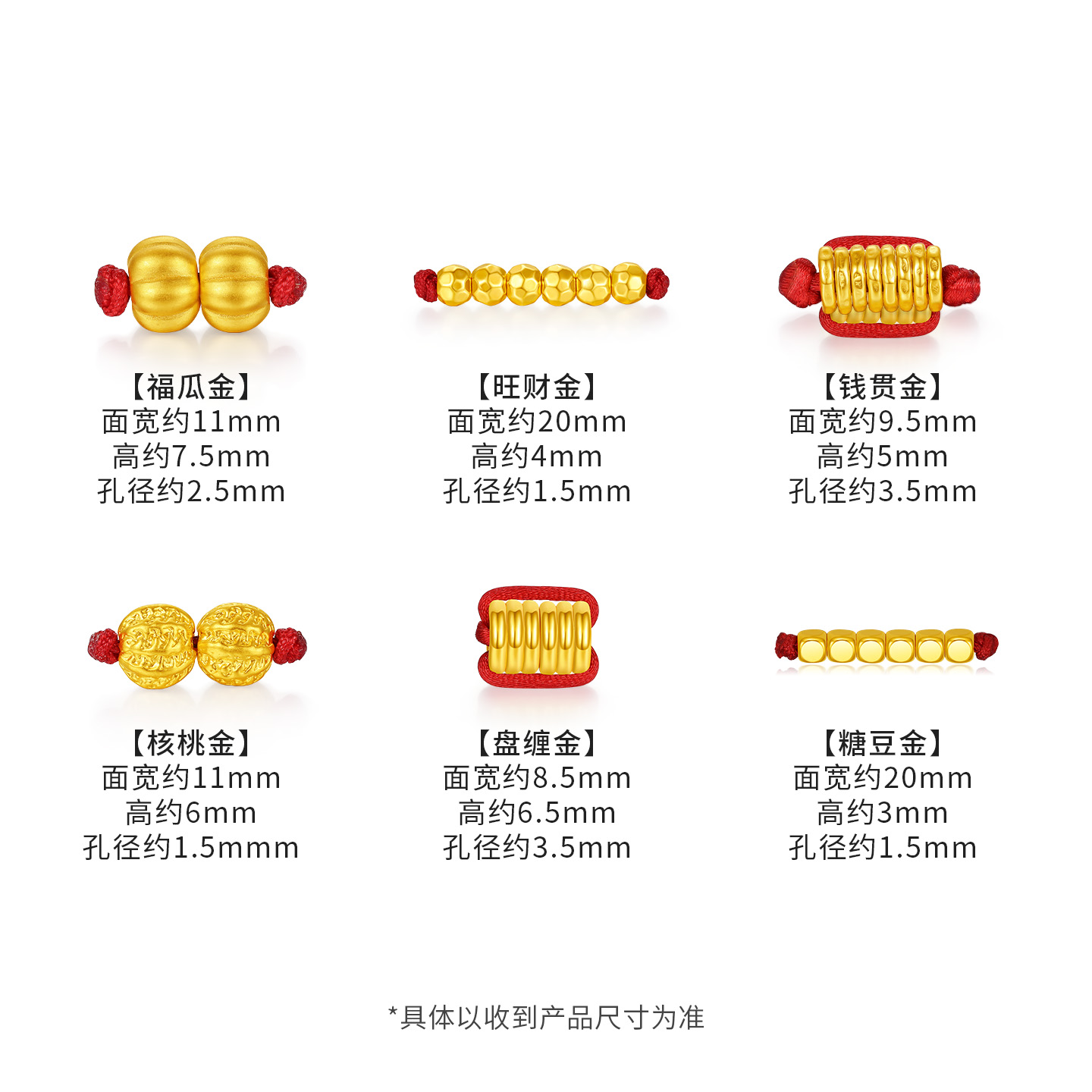 六桂福珠宝盘缠散珠黄金串珠足金正品小配件DIY转运珠配饰女手链