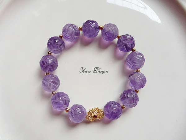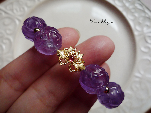 创汇期外贸天然紫水晶手工雕珠绳结纹银镀金碧玺莲花手链优芝设计