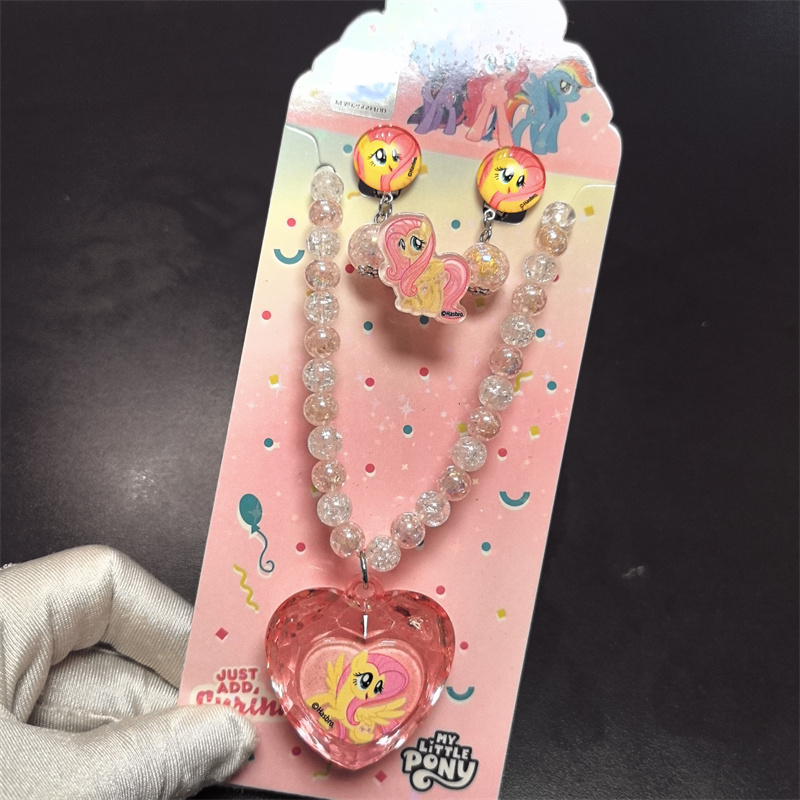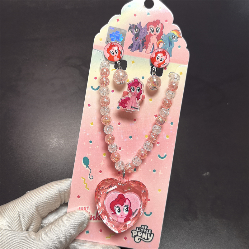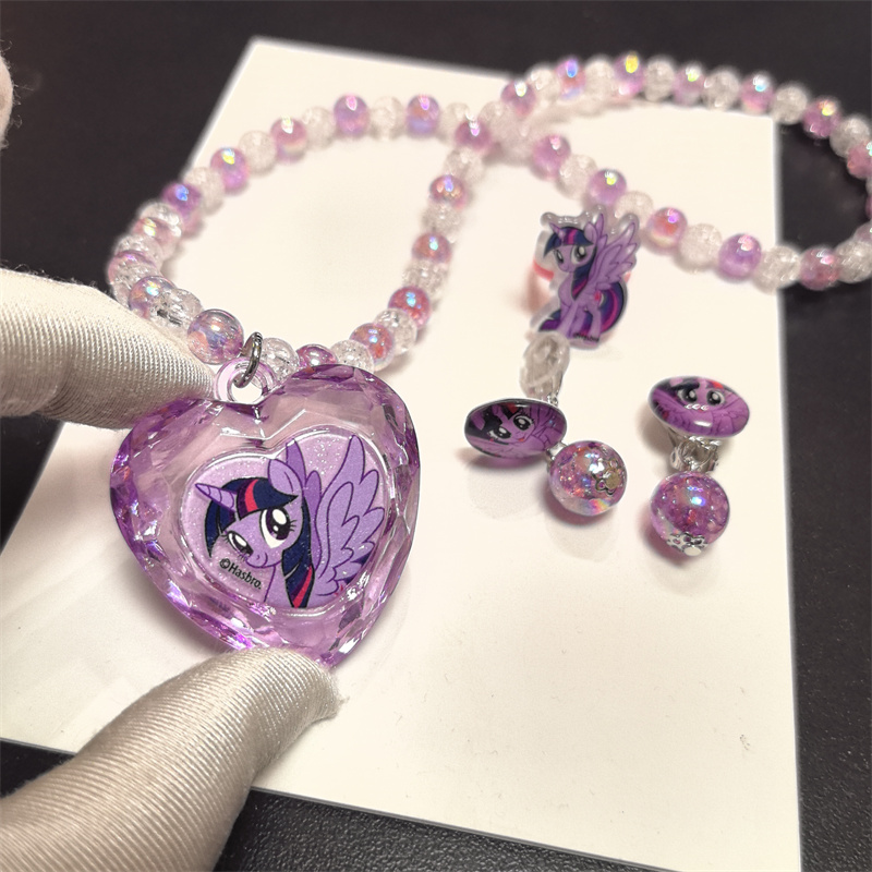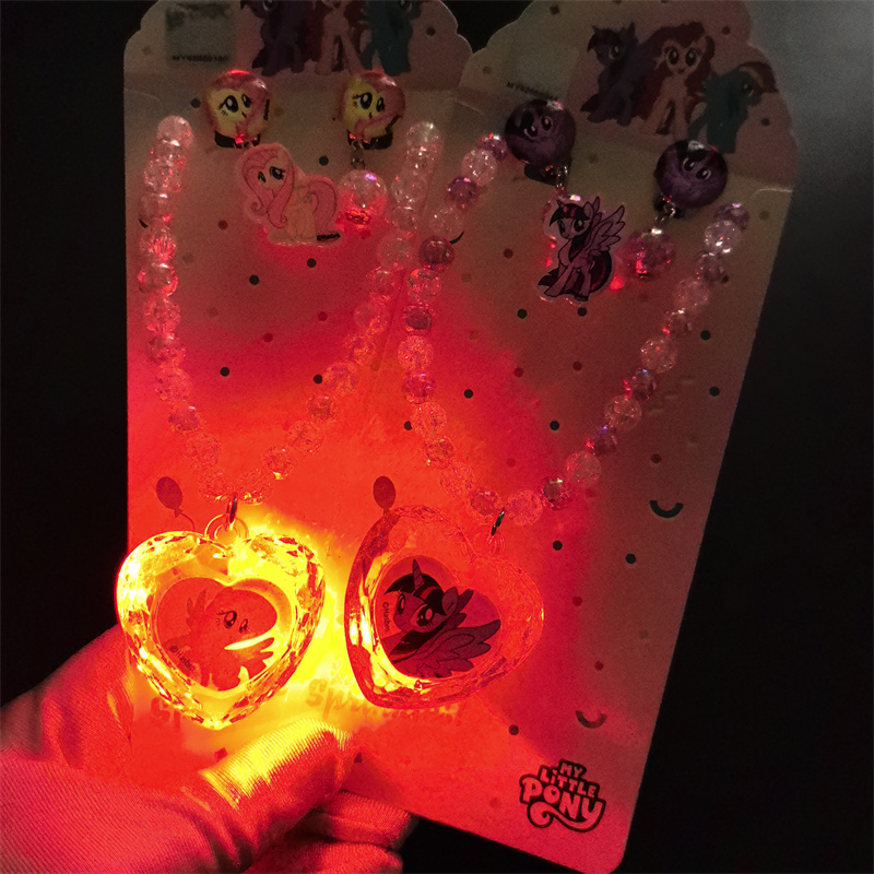 儿童小马宝莉发光项链戒指耳夹套装女宝礼物首饰圆珠桃心亮灯吊坠