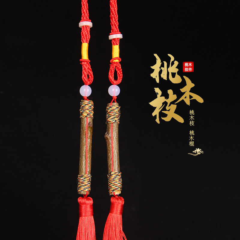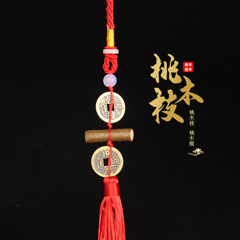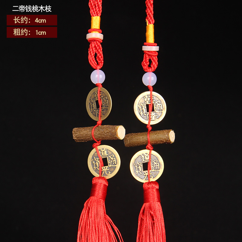 铜五帝钱+桃木枝+铜太极八卦镜挂件 桃木太岁牌钥匙扣挂件